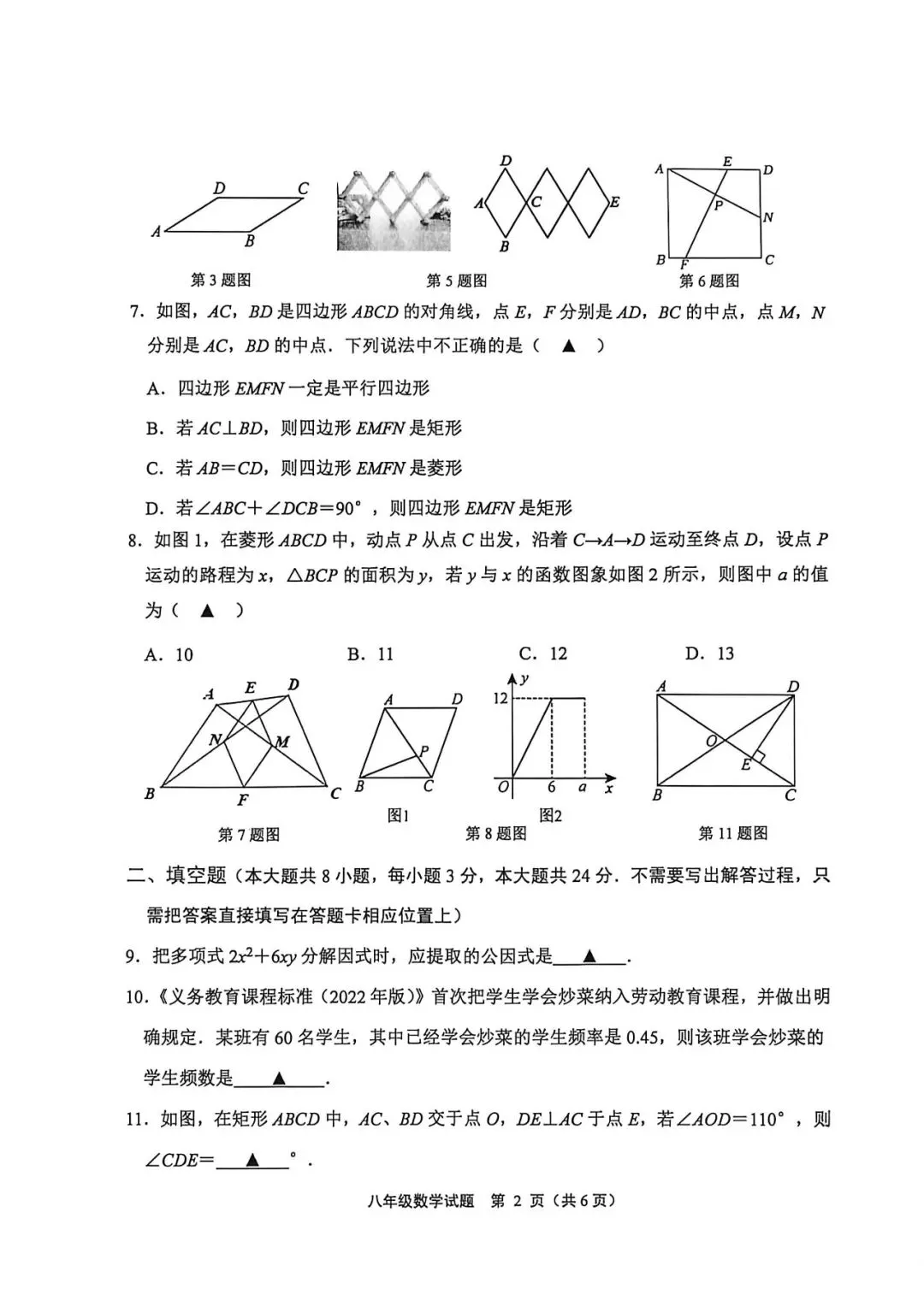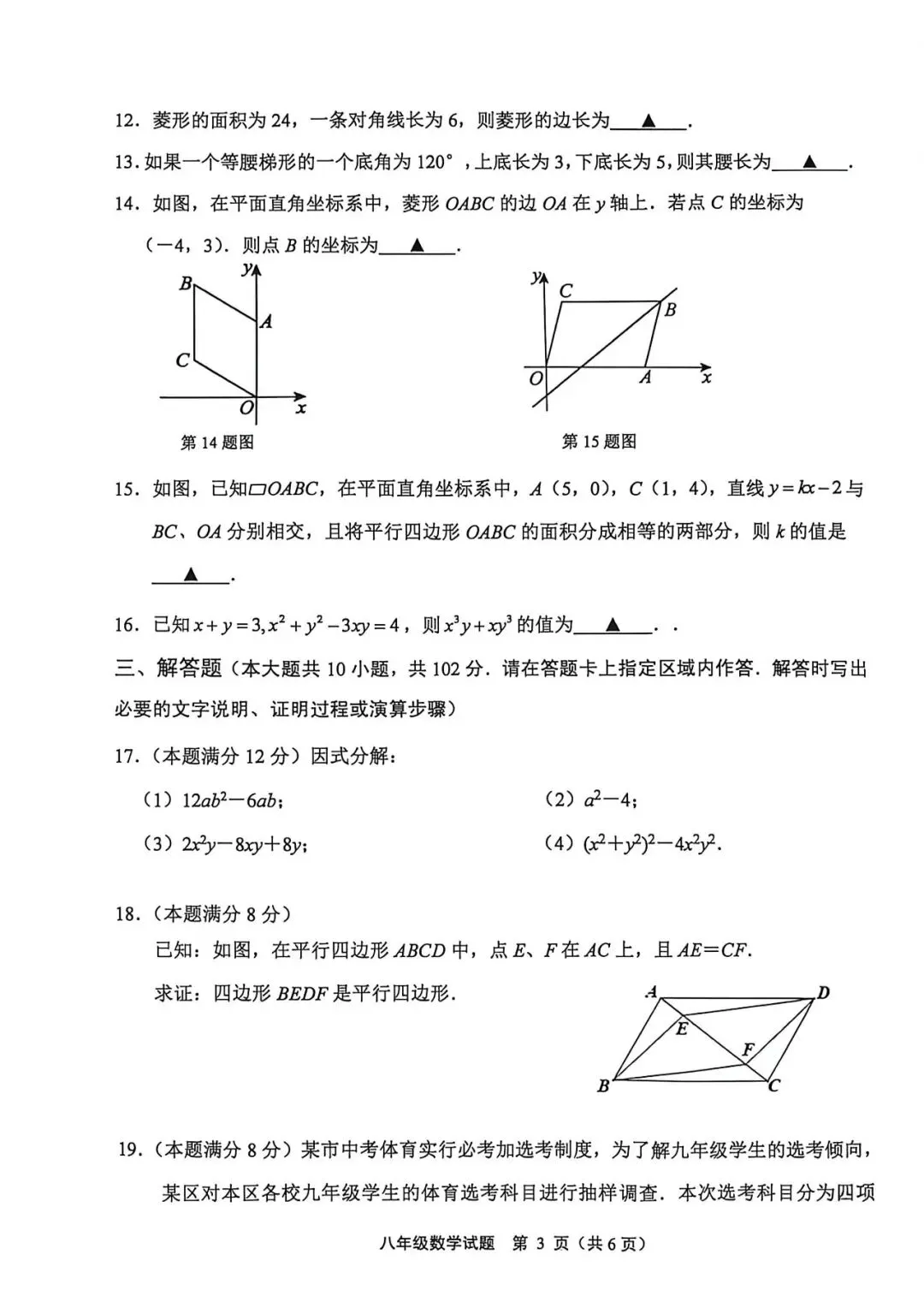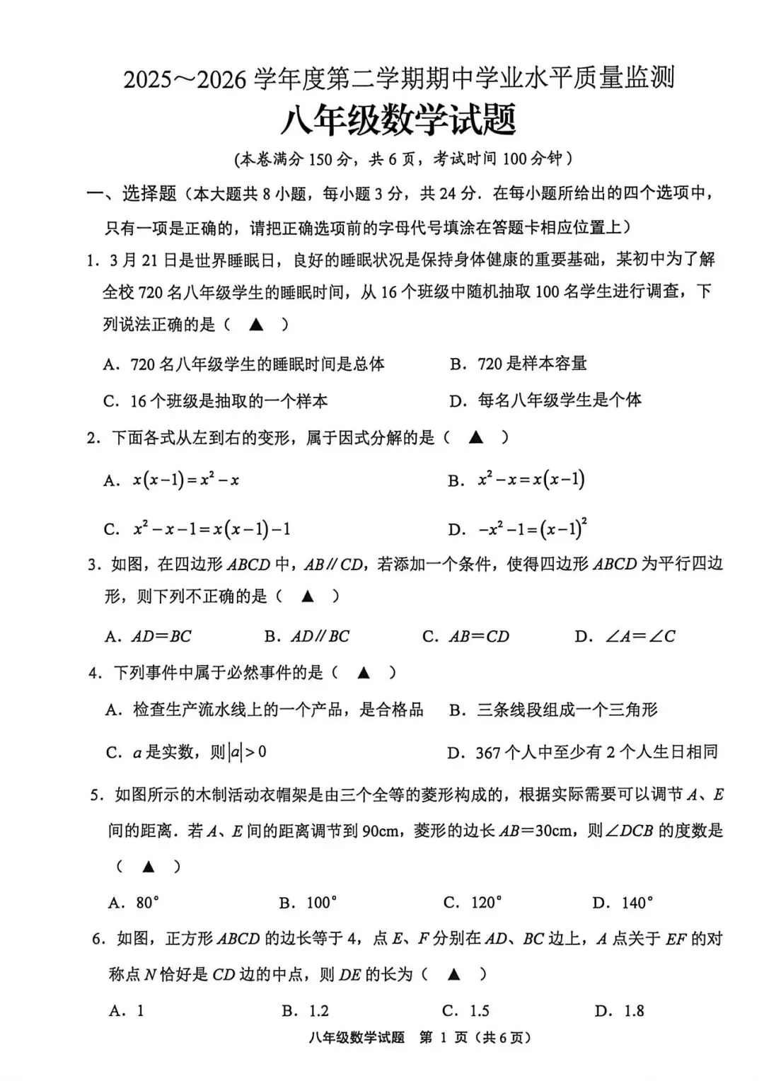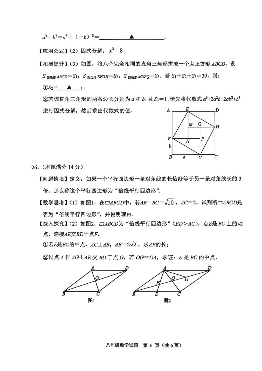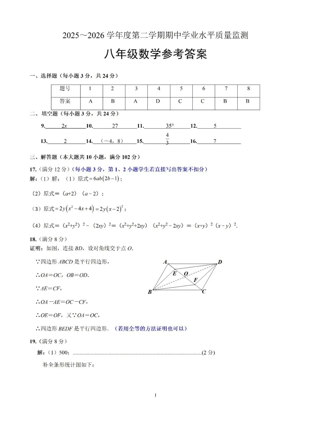 >2025-2026八下数学期中试卷4.23(赣榆)