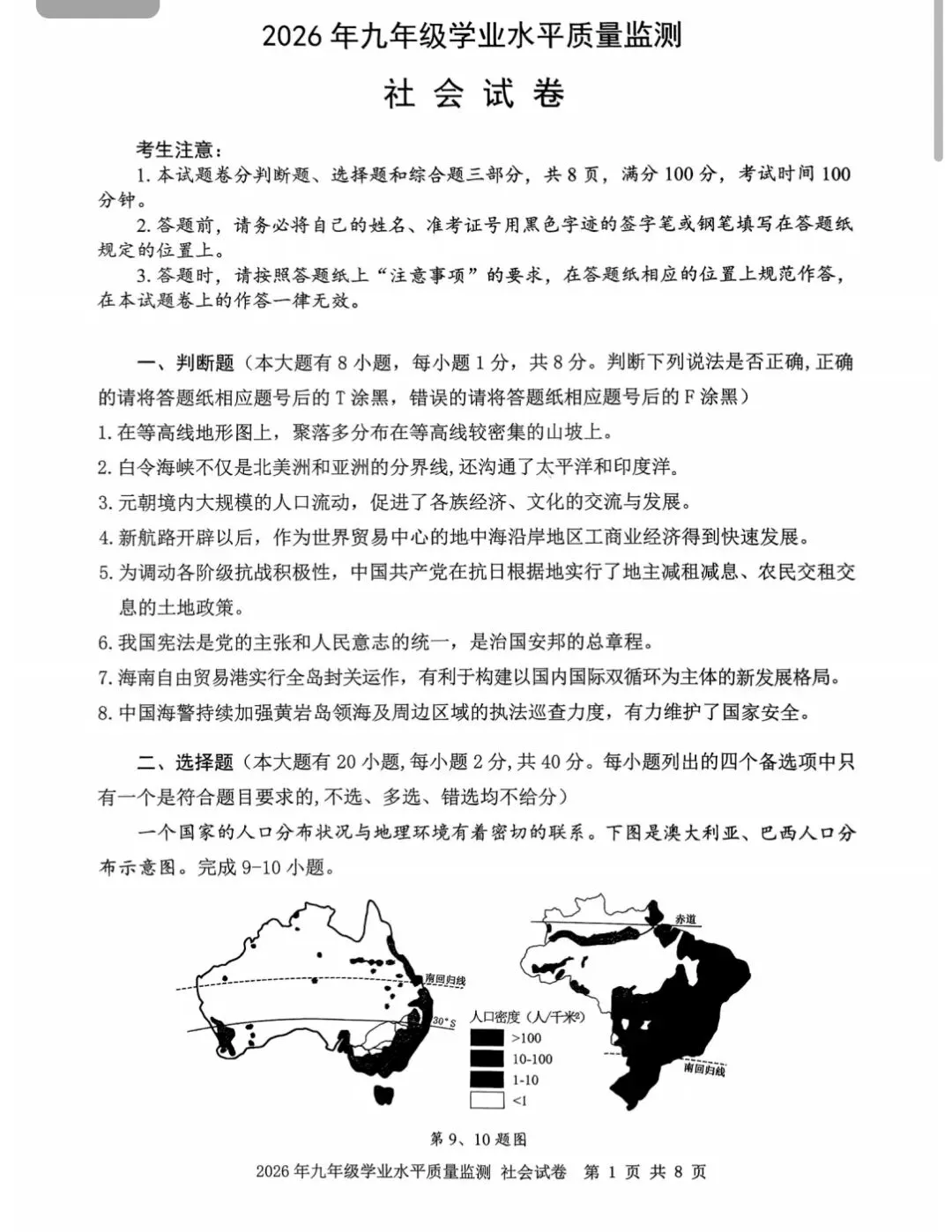 >2604宁波一模社会试卷