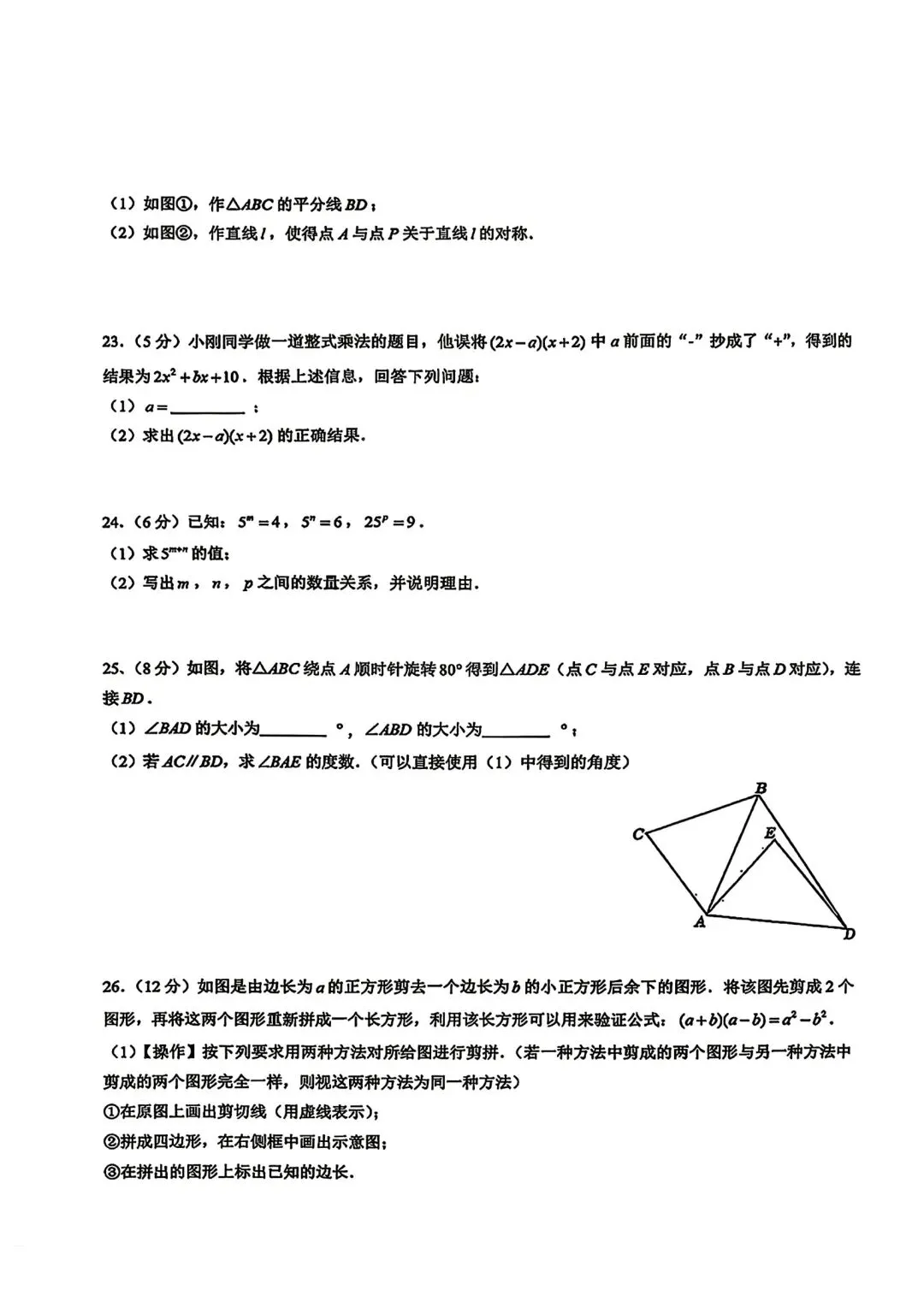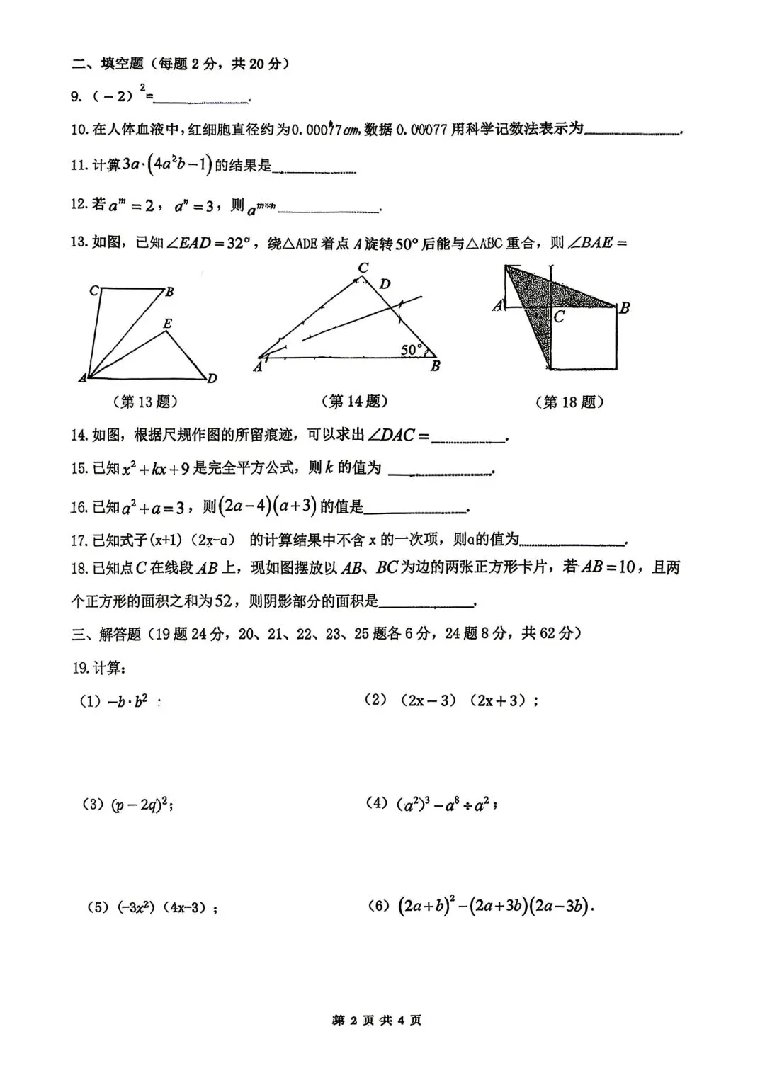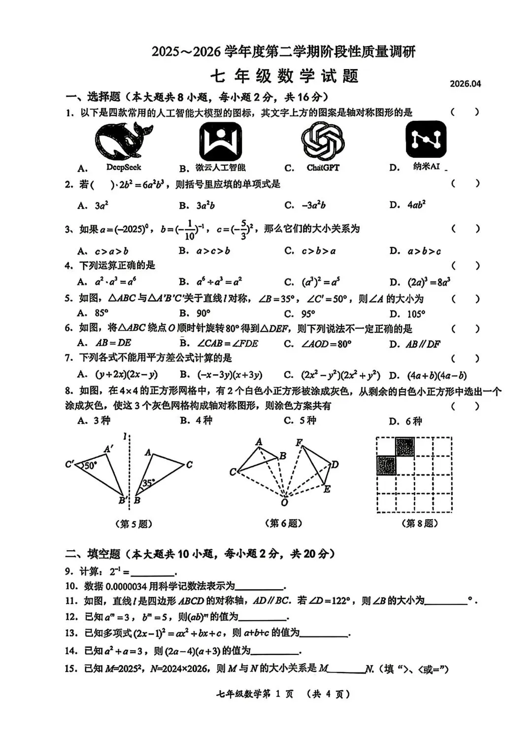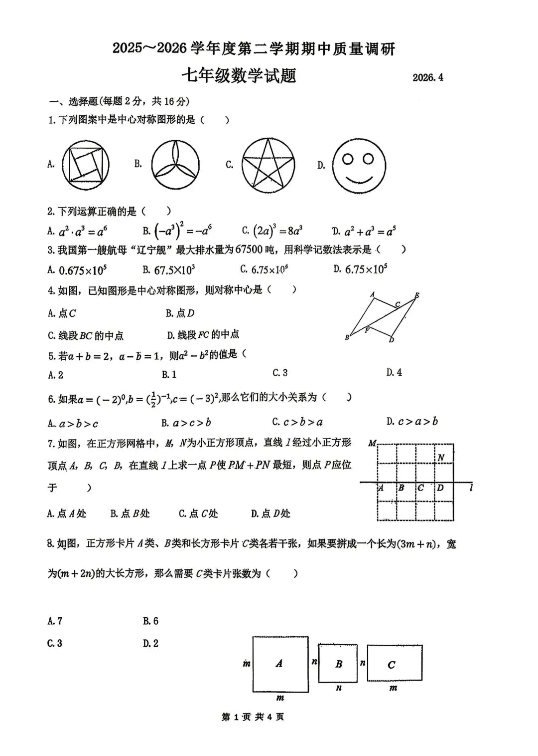 2026.4保定乐凯中学七八年级期中试卷含答案(可下载)