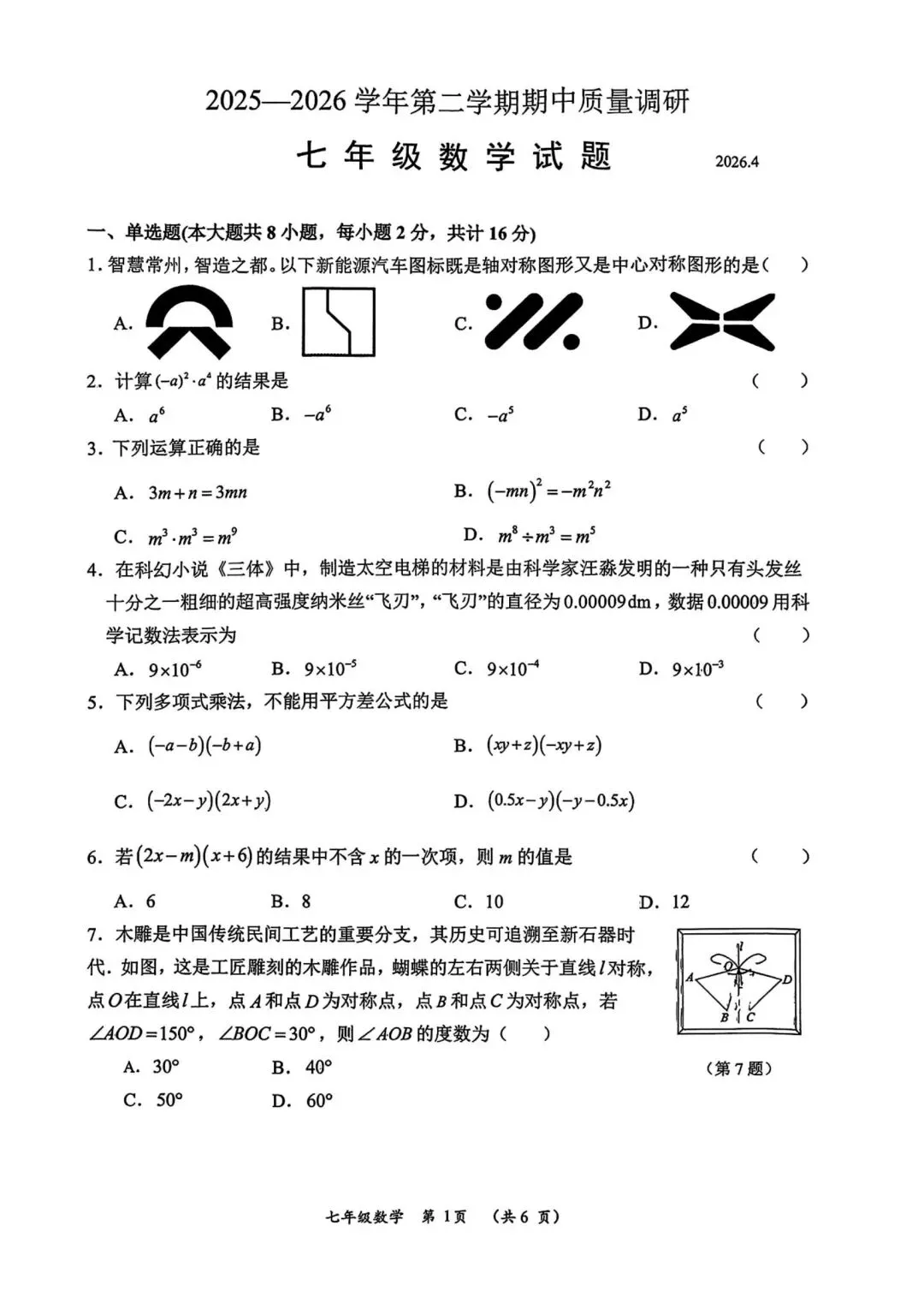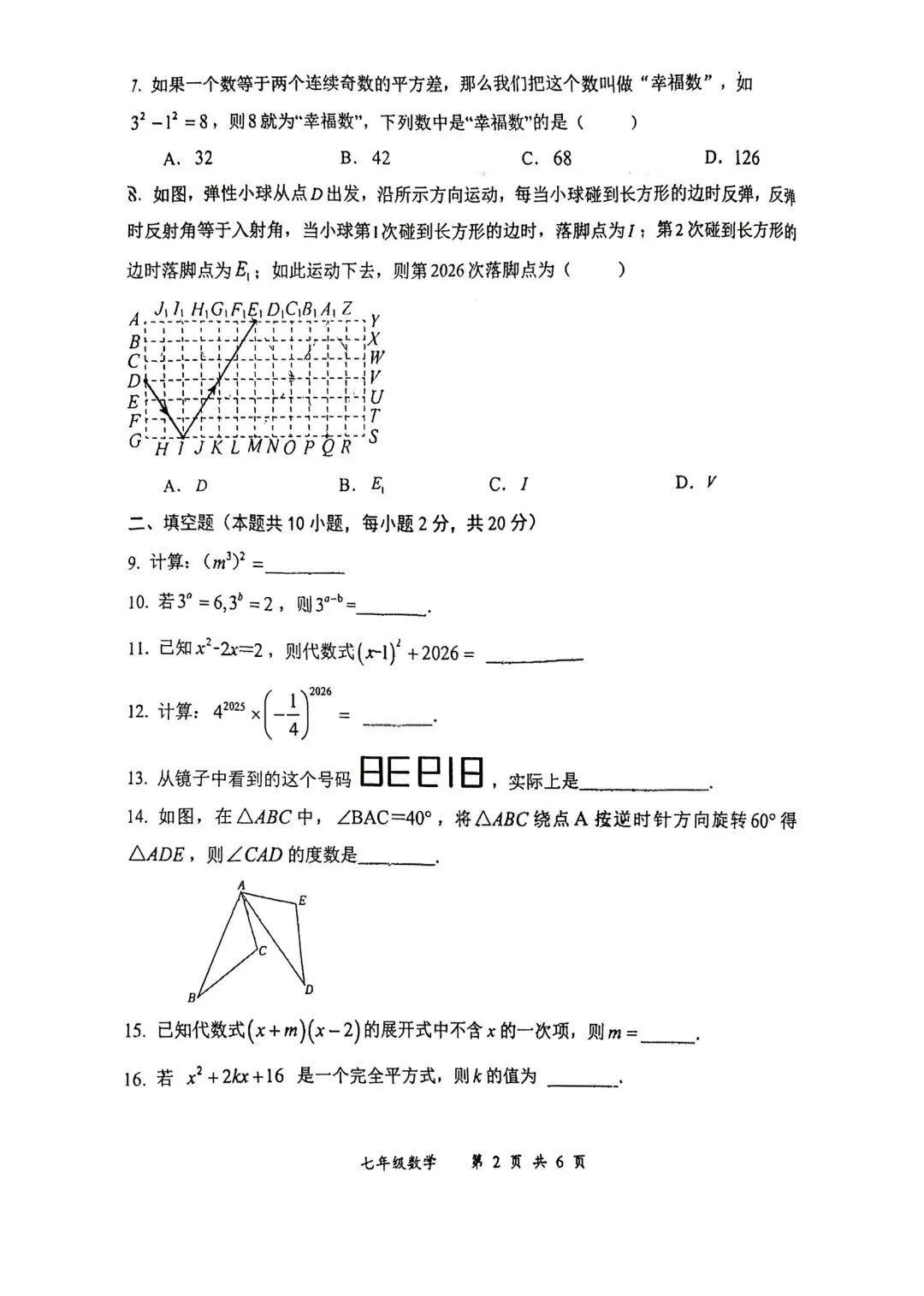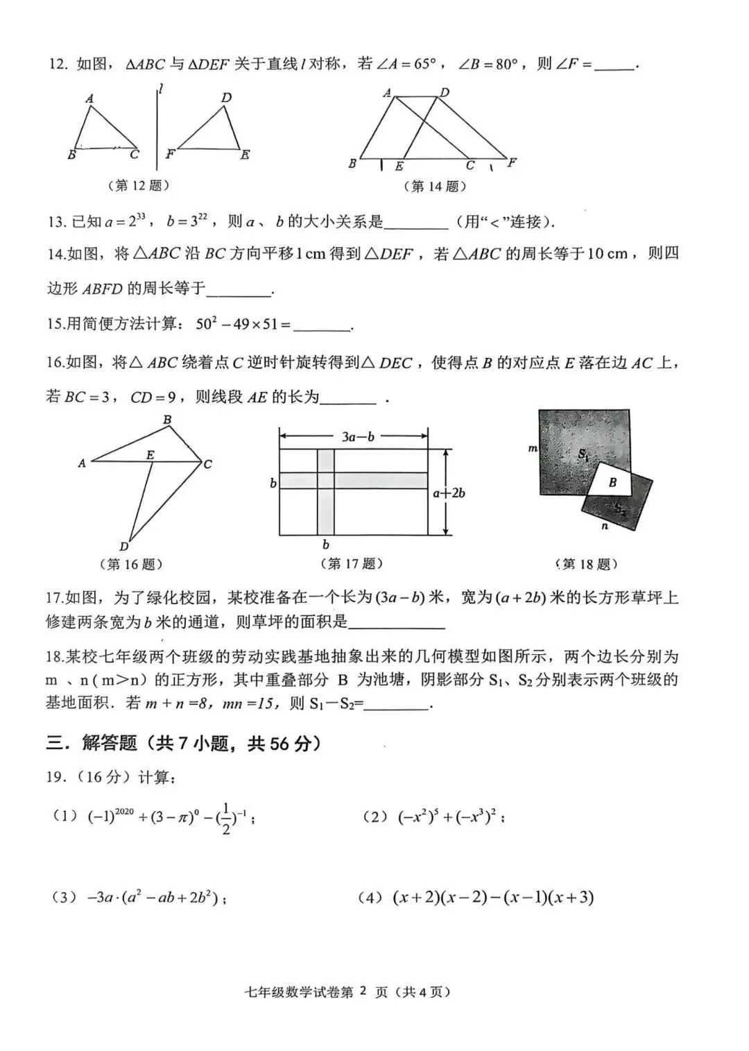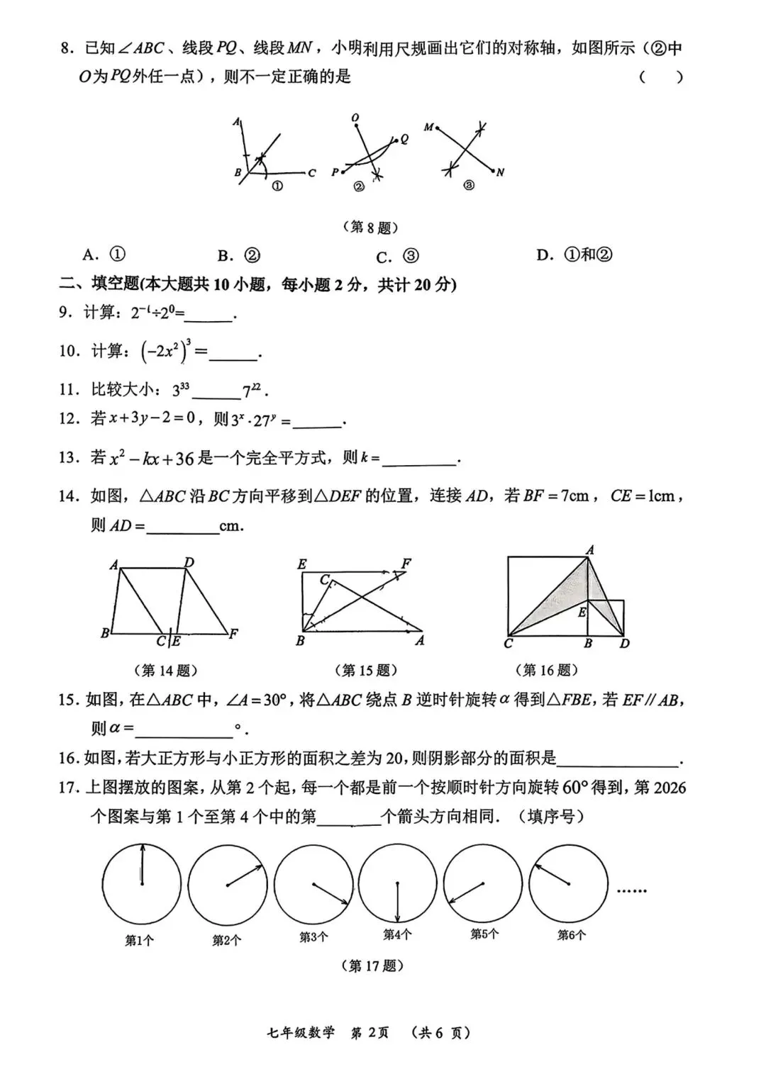 2026.4保定乐凯中学七八年级期中试卷含答案(可下载)