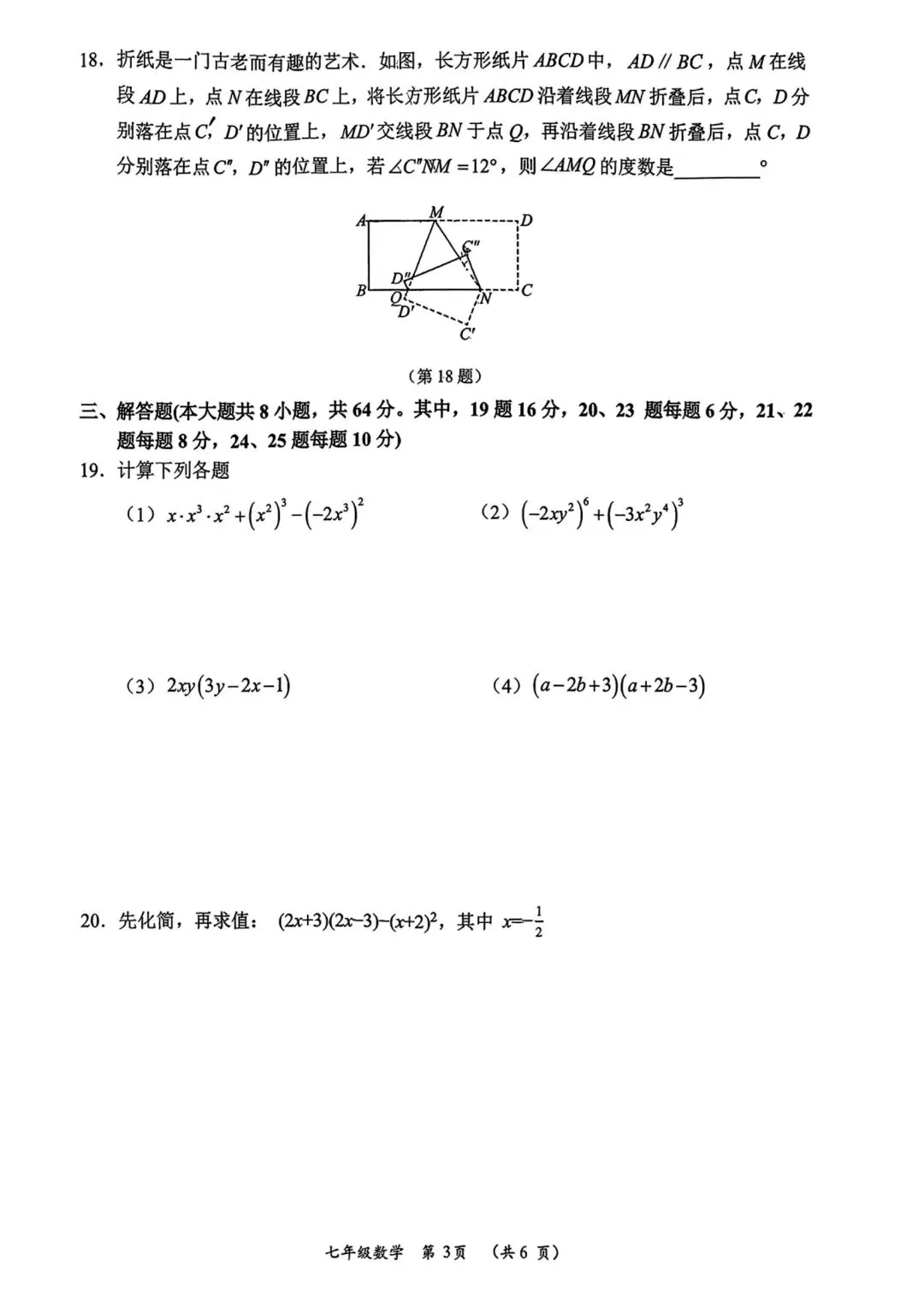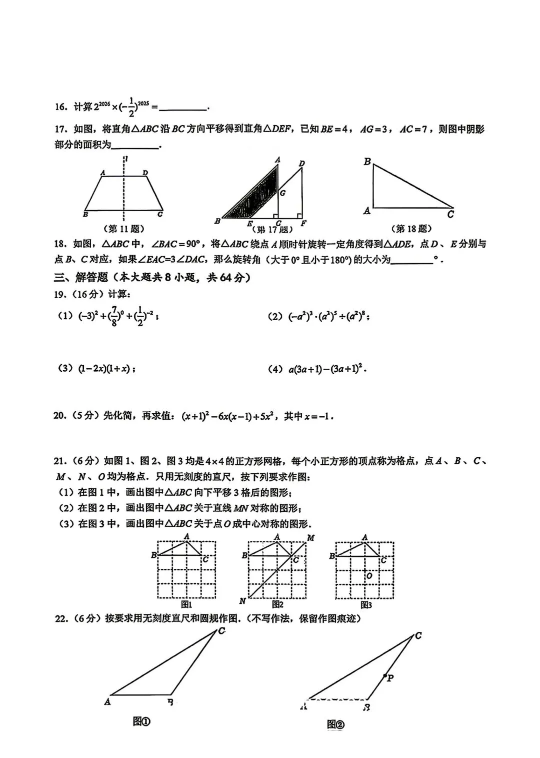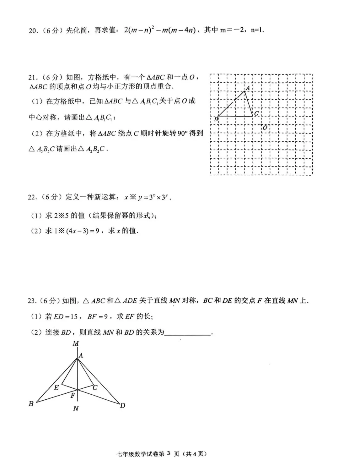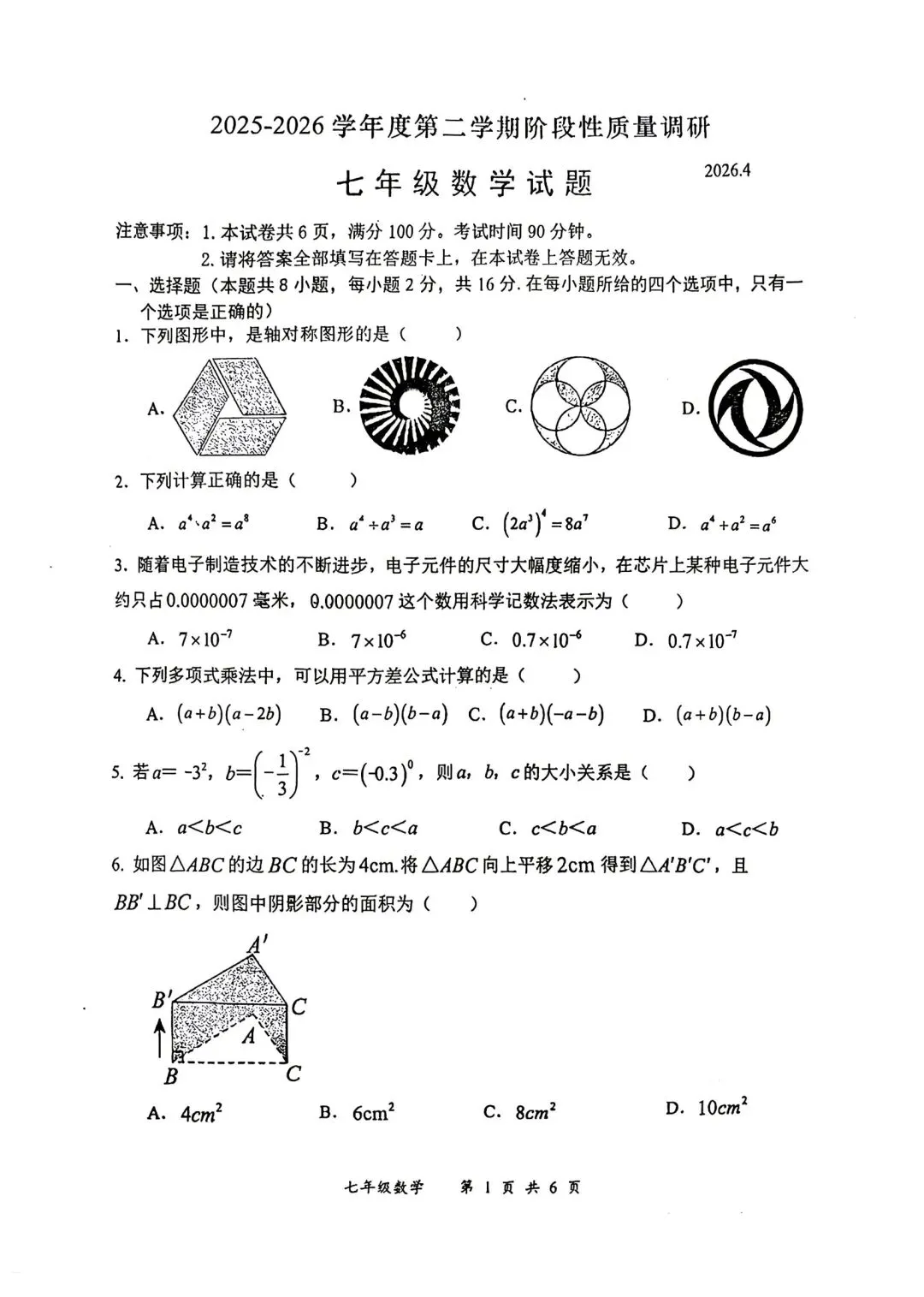 2026.4保定乐凯中学七八年级期中试卷含答案(可下载)
