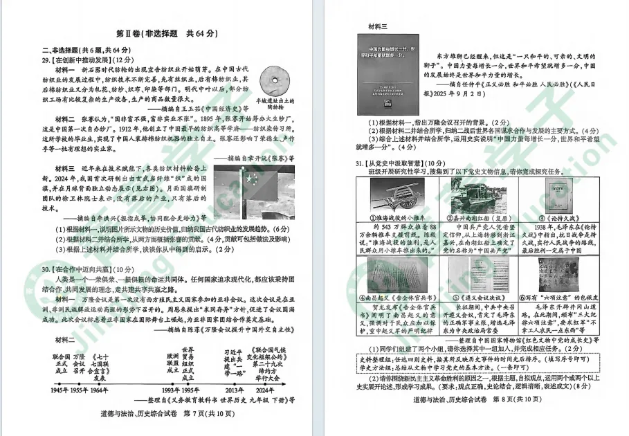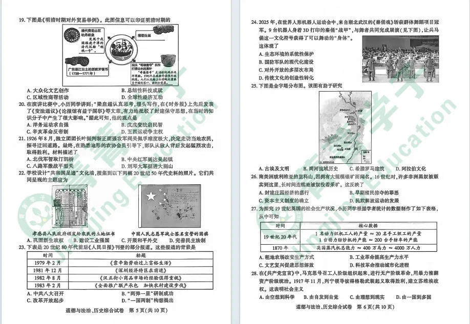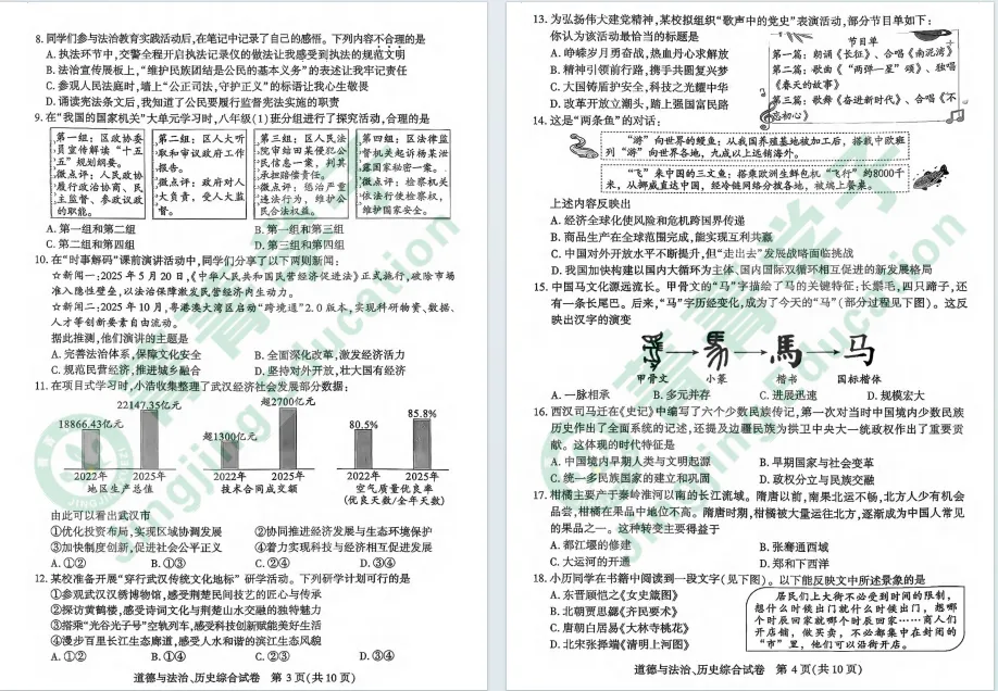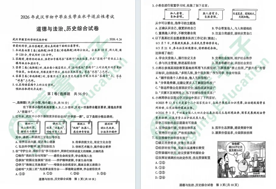 2026年武汉初三四调考试已经结束,道法历史试卷也已更新!难度如何,一起来看看吧!