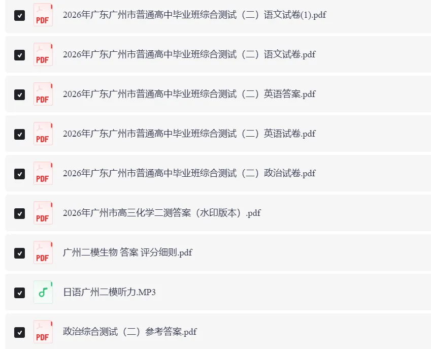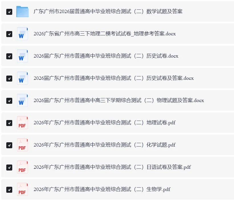 >全科可打印!2026广州二模试题+答案电子版下载!