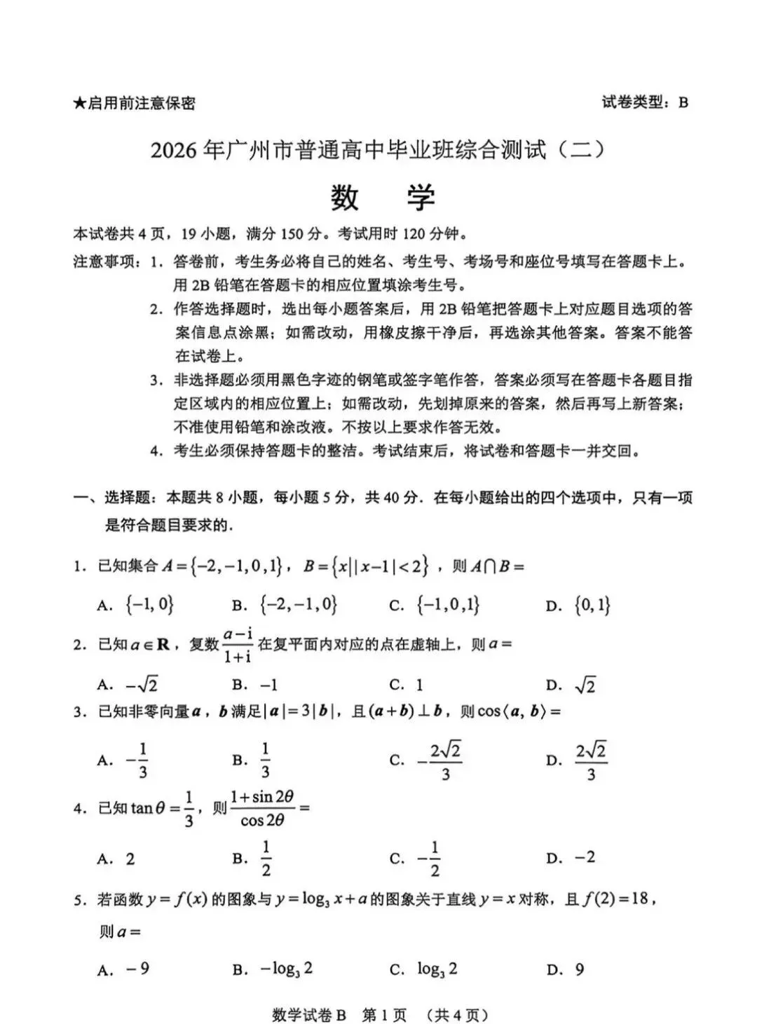 广东省广州市2026年广州市普通高中毕业班综合测试(二)