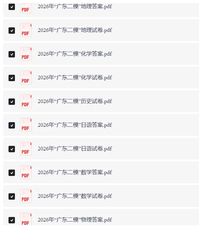 >全科可打印!2026广东二模试题+答案电子版下载!