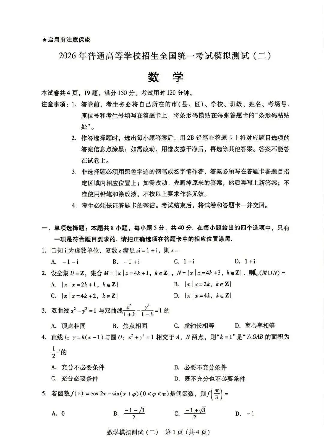 广东2026 年普通高等学校招生全国统一考试模拟测试(二)