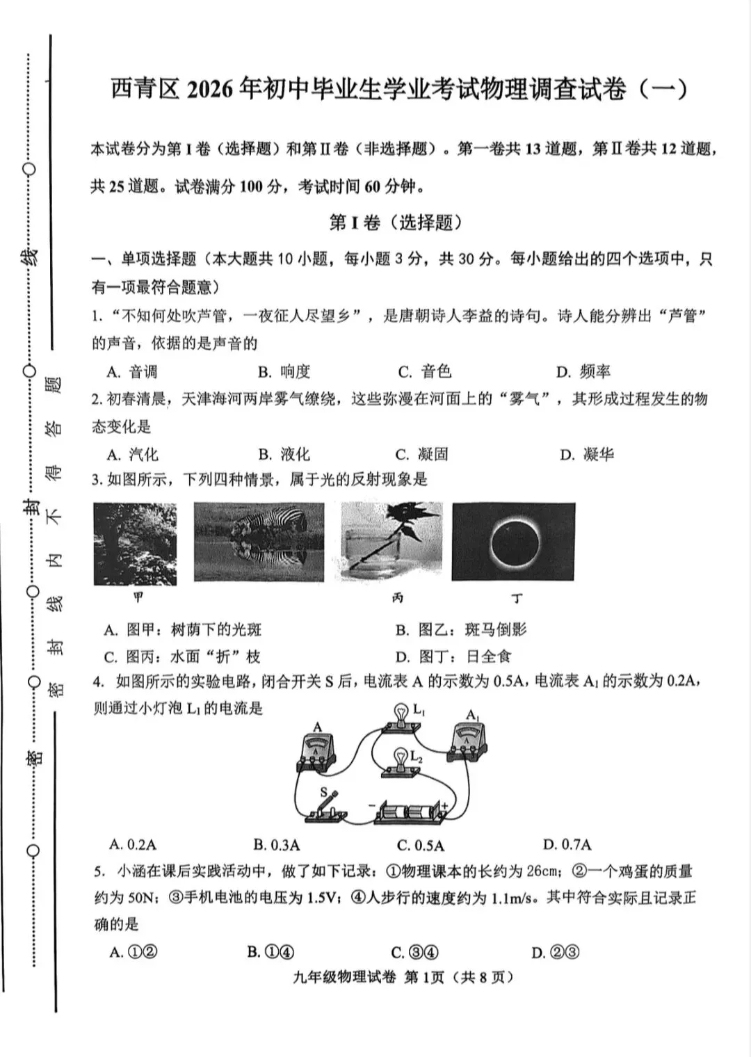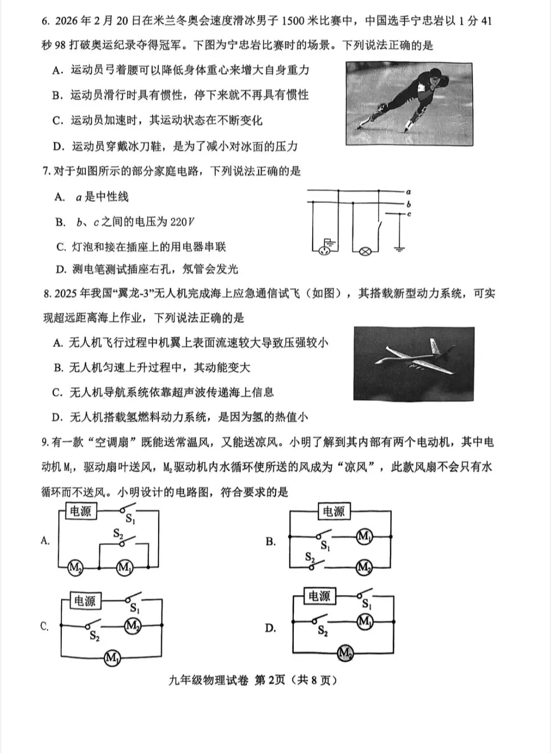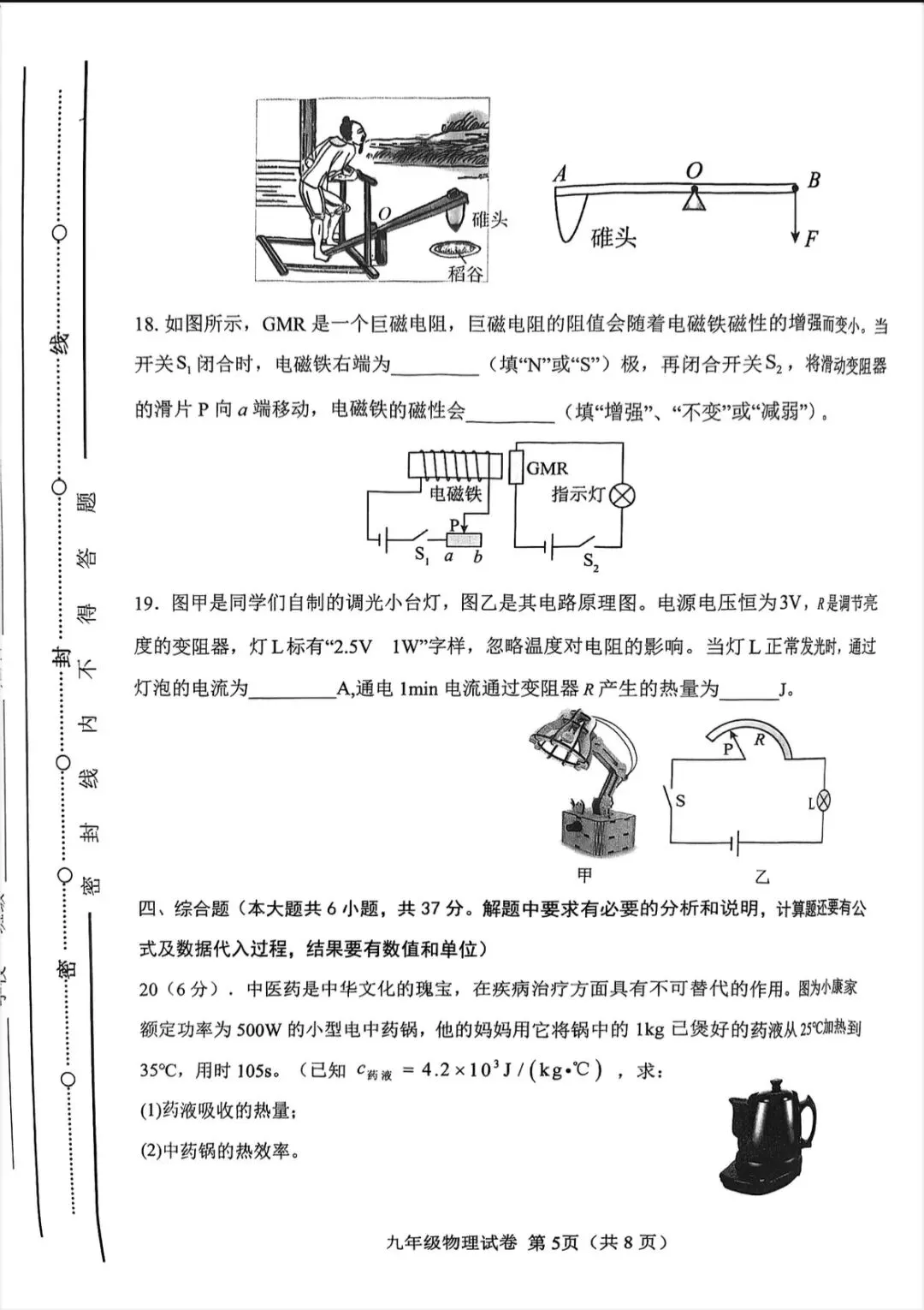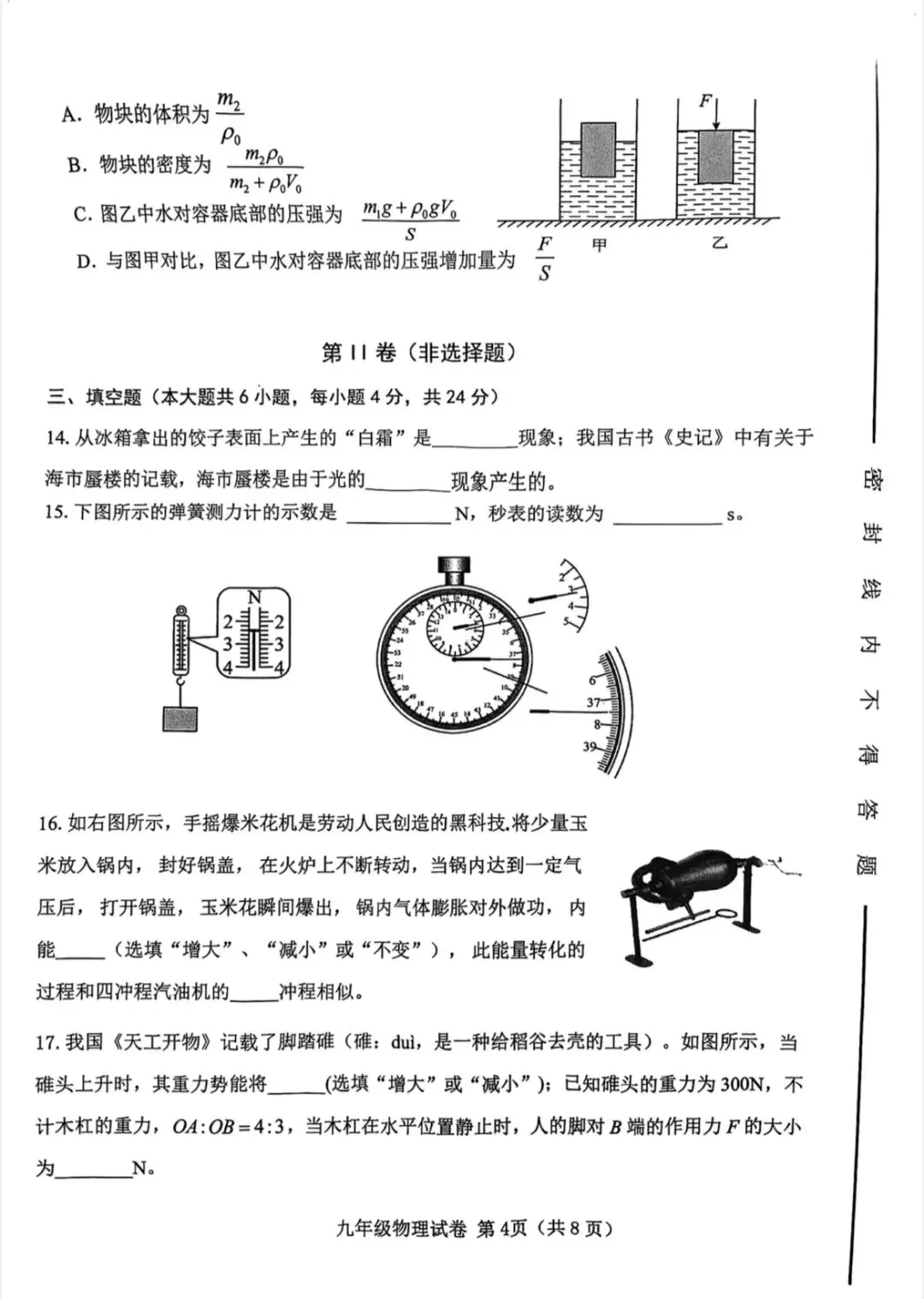 2026九年级下 湖北荆州二模试卷-物理卷及答案