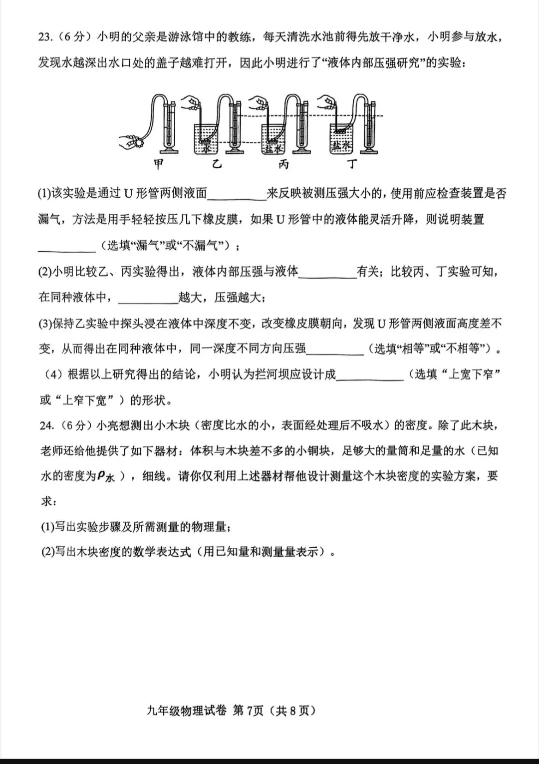 【全科】2604富阳区中考一模试卷及答案(含英语听力音频)