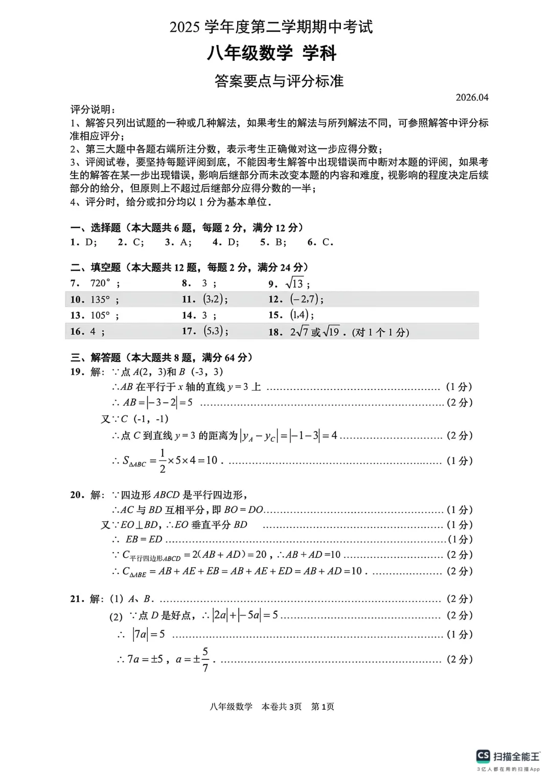 上海市虹口区八年级数学期中试卷及答案(2026.4)