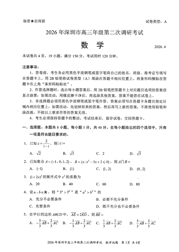 深二模今天下午刚刚考完,新鲜热辣分享:2026深圳二模全科试卷和答案
