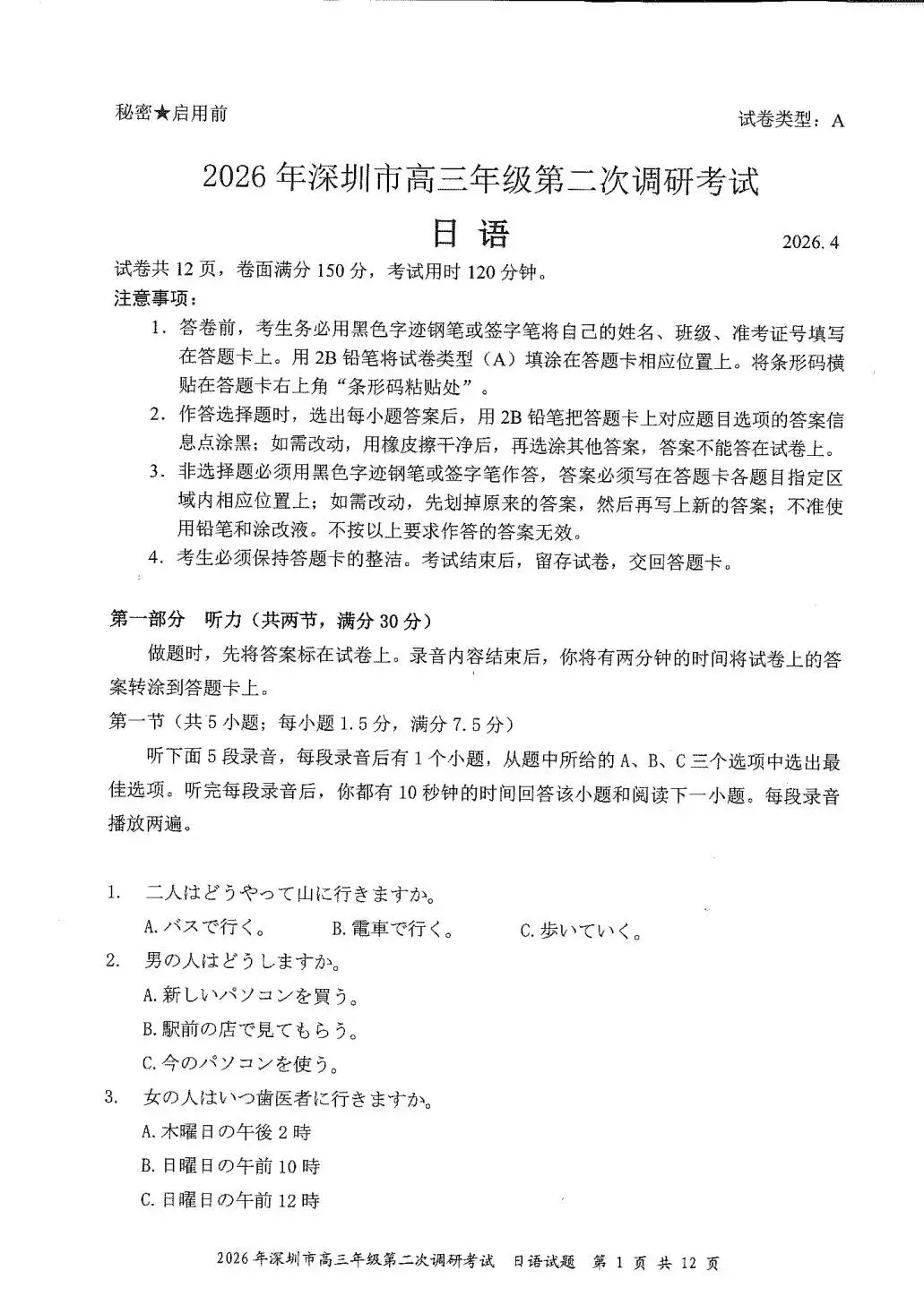 日语试卷和答案来了,需要电子版试卷和听力文件的同学私聊我,想要看其他科目试卷及答案的同学请关注同名视频号或者微信公众号,查看上期内容,全部试卷收集完后,我会一起放在百度网盘里给大家共享,请关注。