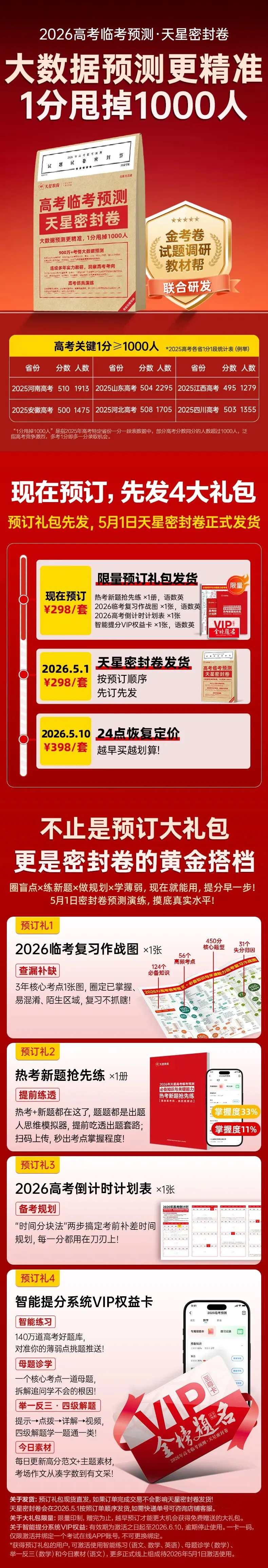 🎯【2026高考临考预测天星密封卷!重磅来袭!】