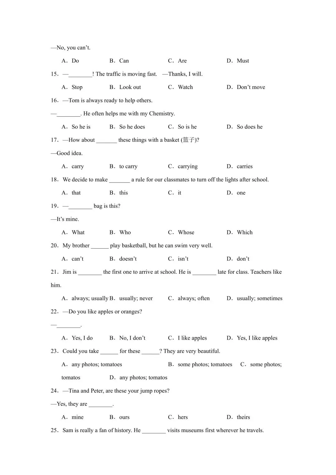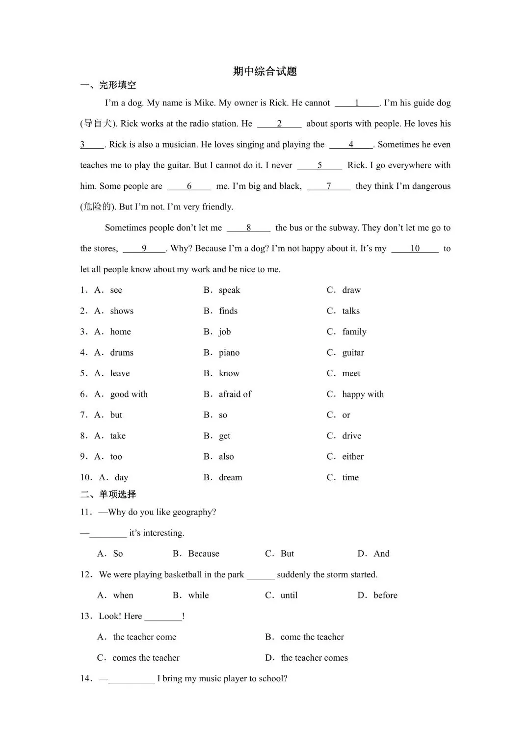 2026学年七年级英语下学期期中模拟试卷含解析(电子版可打印)