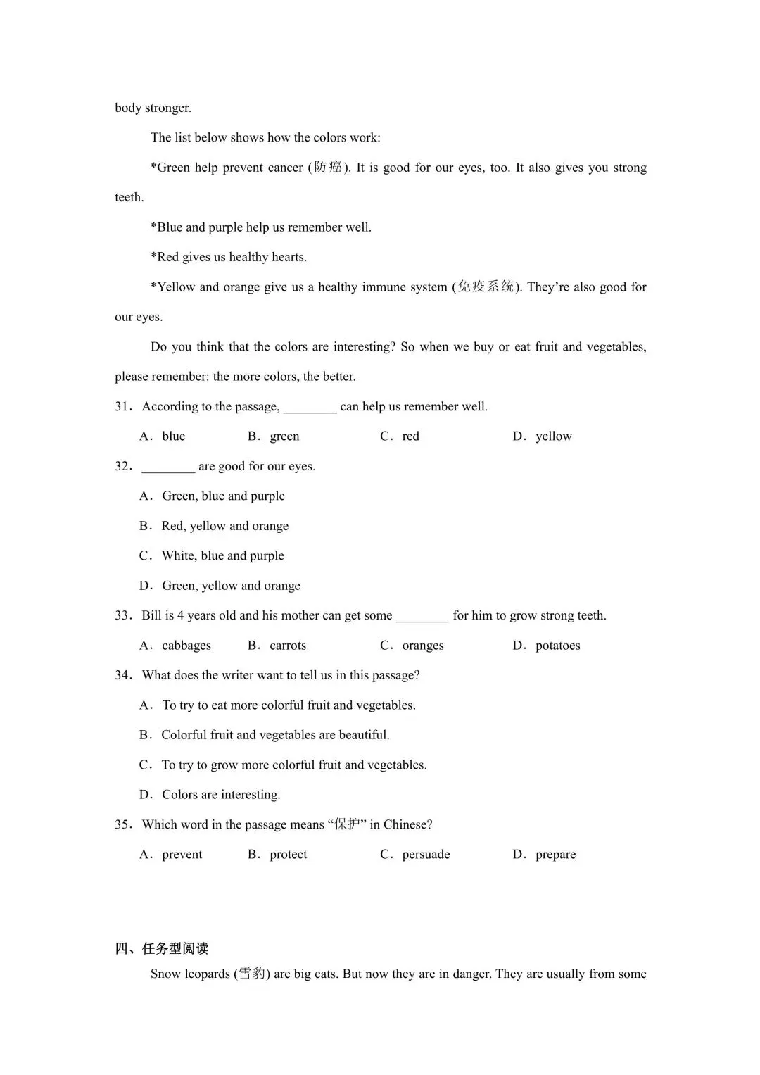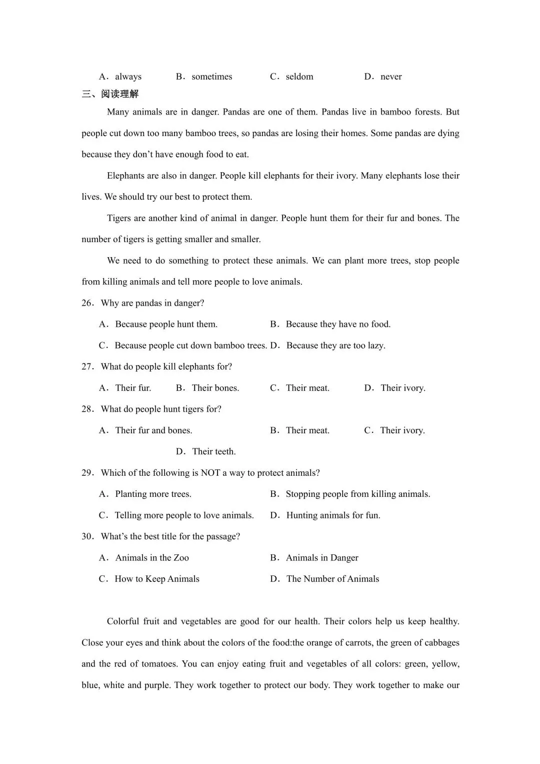 >2026学年七年级英语下学期期中模拟试卷含解析(电子版可打印)