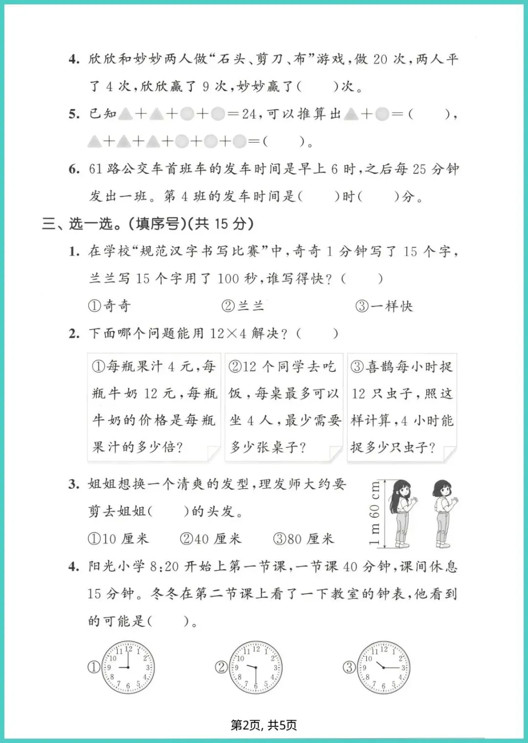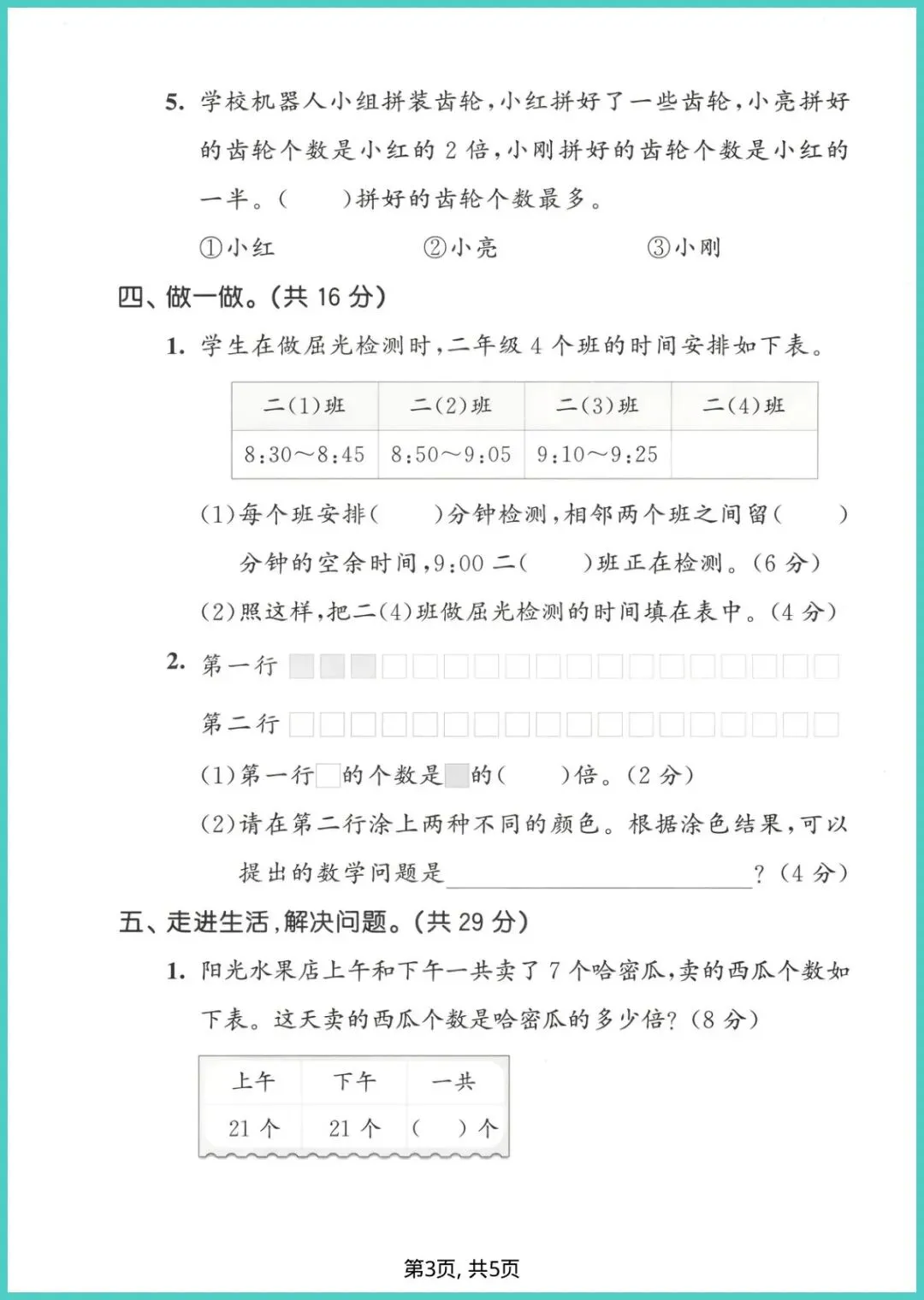 26年春苏教版二年级下册数学期中拔尖测试卷,新鲜出炉!5页精编,电子版一键打印。试卷囊括计算小达人、应用题闯关、思维拔高三大模块,紧扣课本又适度跃阶,让孩子期中前把“易错点”变“得分点”。每天15分钟,练速度、练审题、练逻辑,悄悄拉开差距。家有二年级娃的家长,别等考试才着急,现在就把卷子打印出来,今晚就安排一节“小火慢炖”的拔尖训练吧!