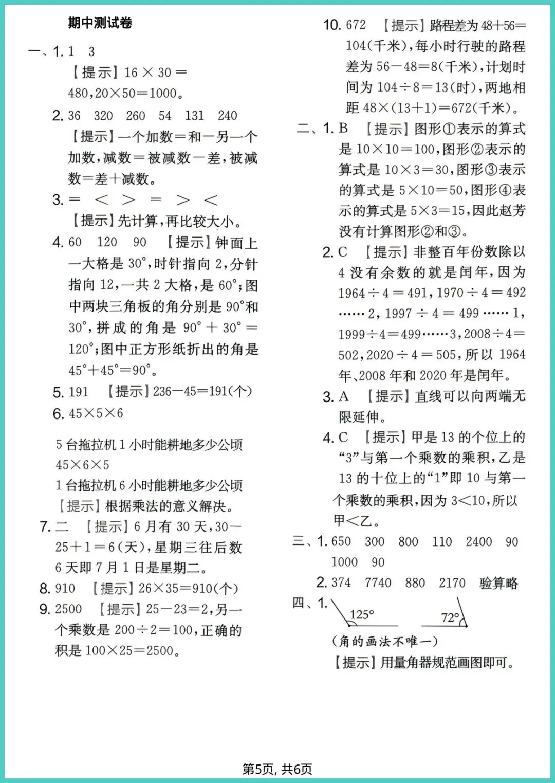 【免费下载】三年级(下)数学_期中拔尖测试卷《苏教版》 | PDF完整高清电子版可打印