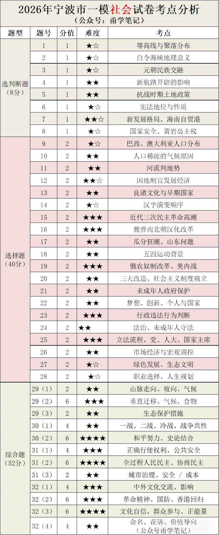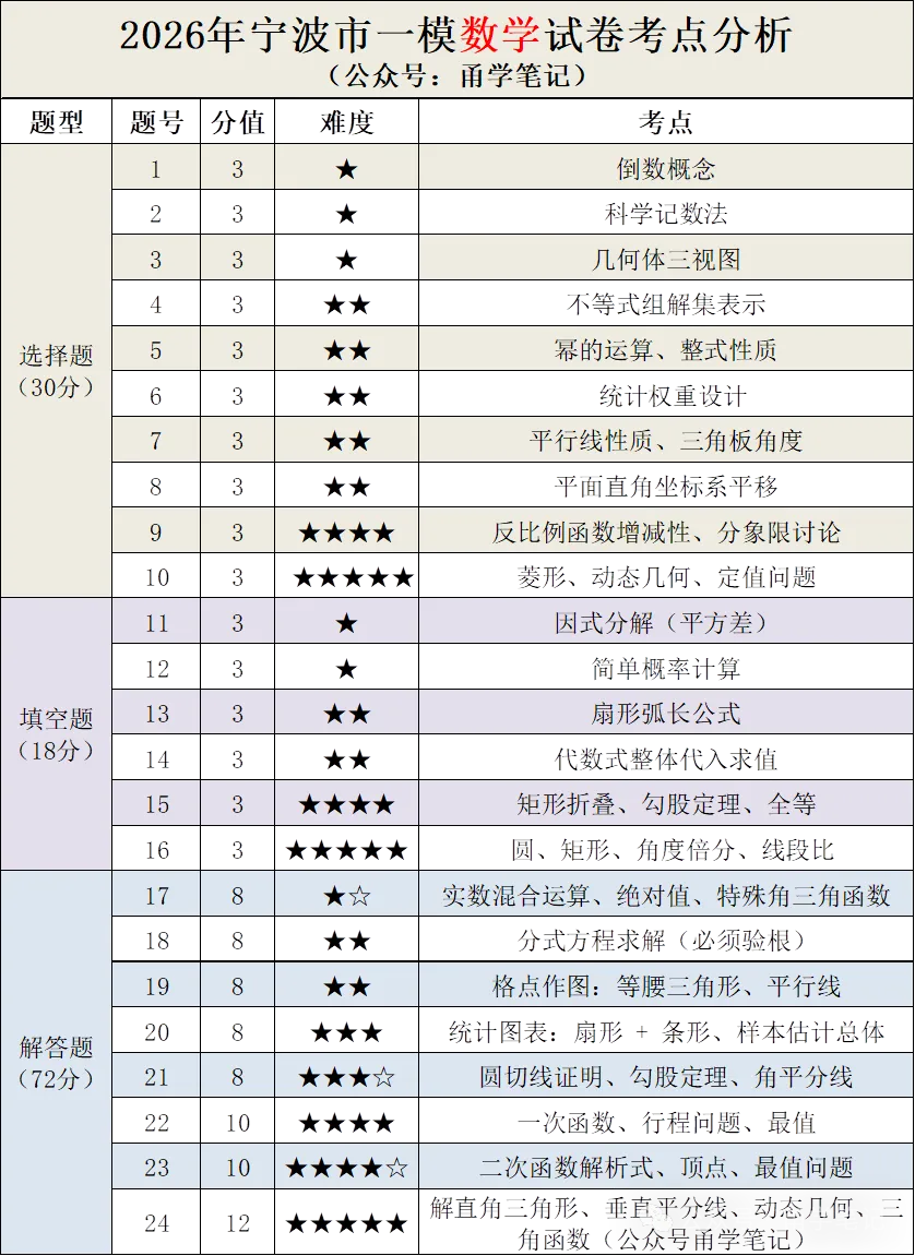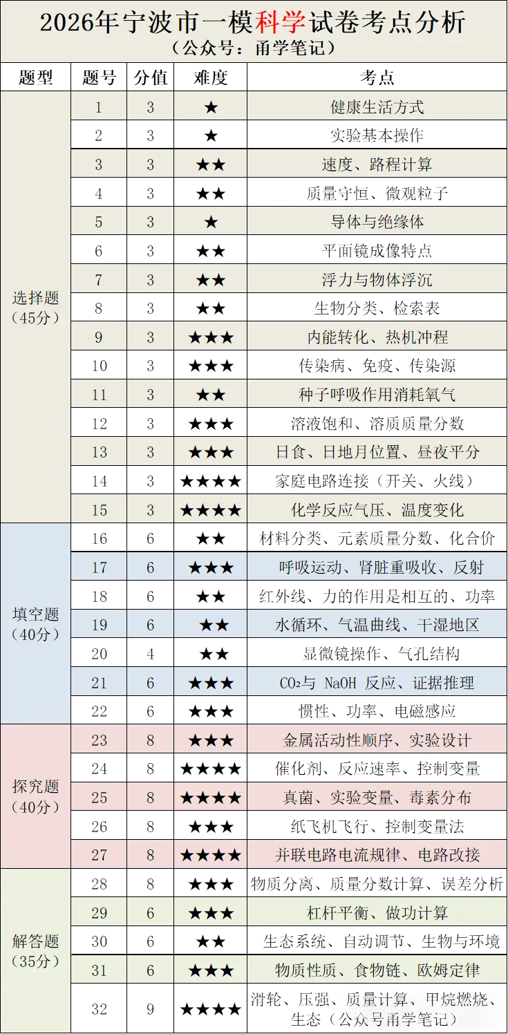 2026年宁波市慈溪一模全科试卷、答案及考点分析(题型+知识点+难度+备考建议)