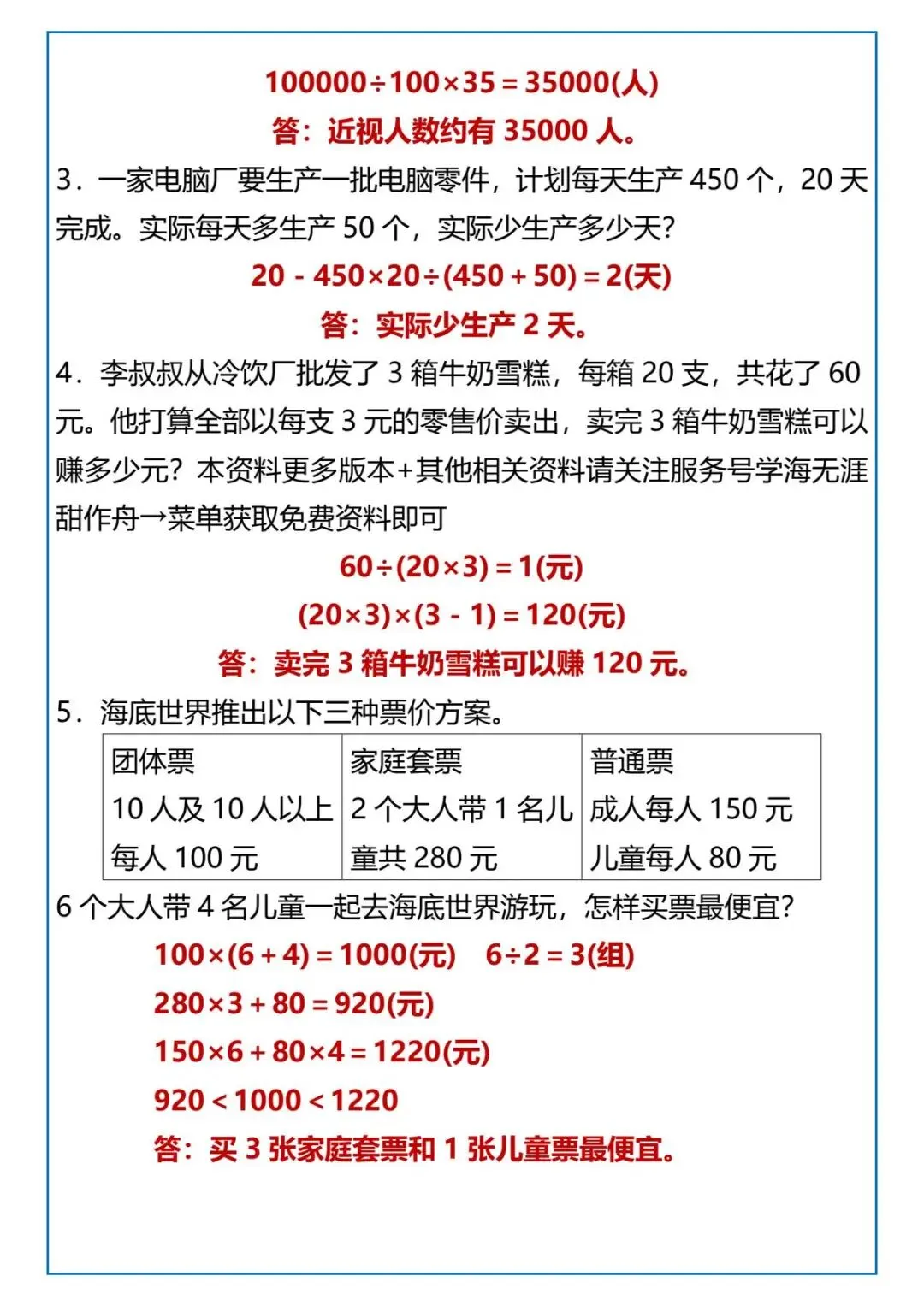 题型分填空、判断、解决问题三大块,既有基础计算稳扎稳打,也有行程问题、购票省钱方案这类生活化拔高题,练思维也练应用。