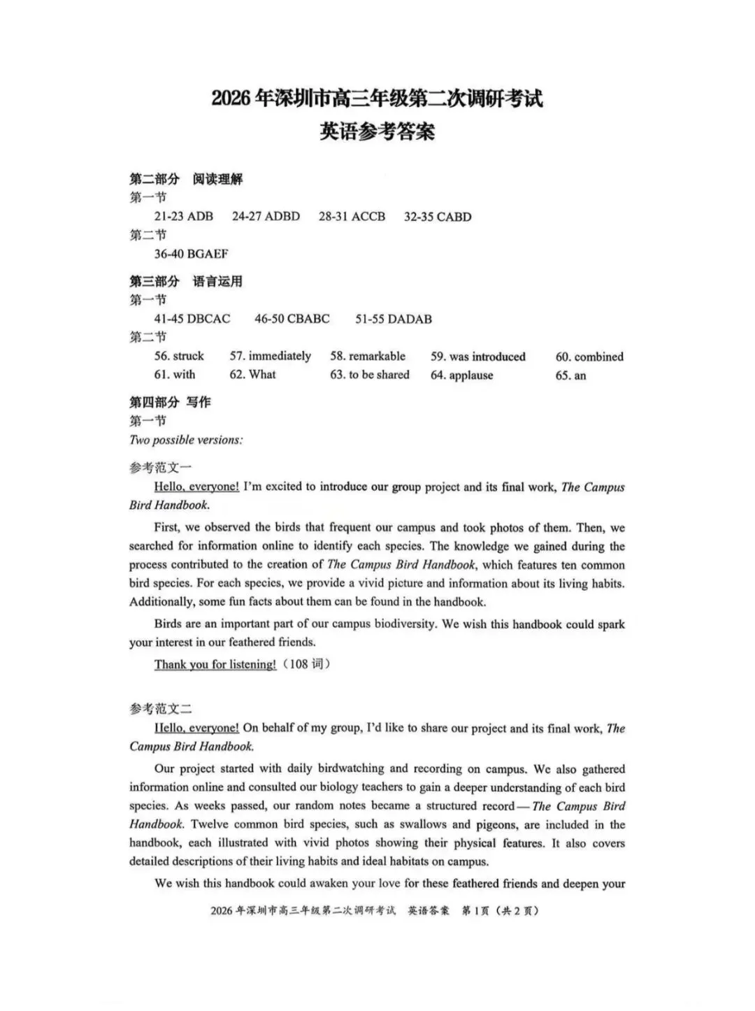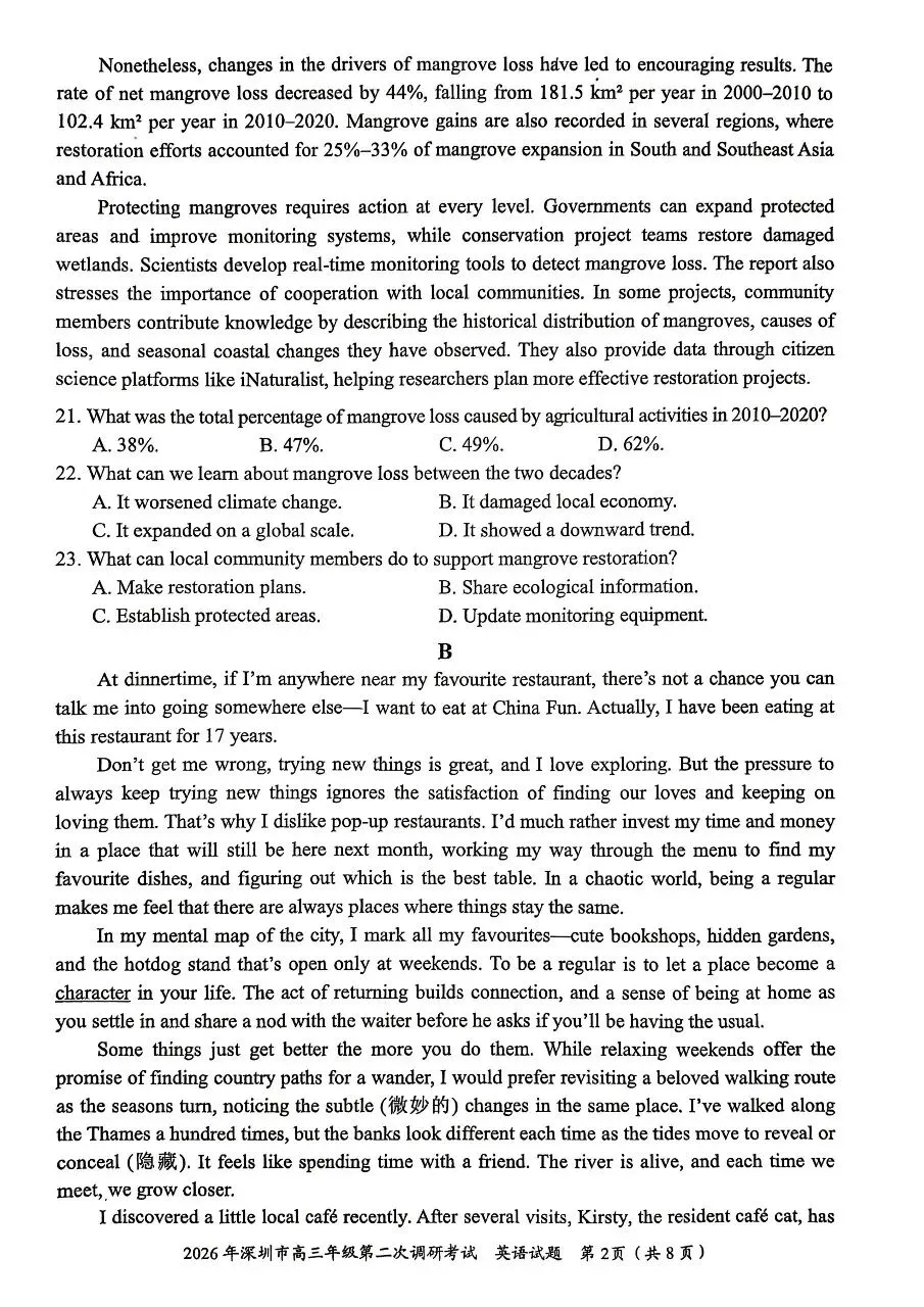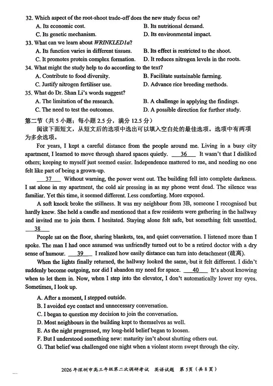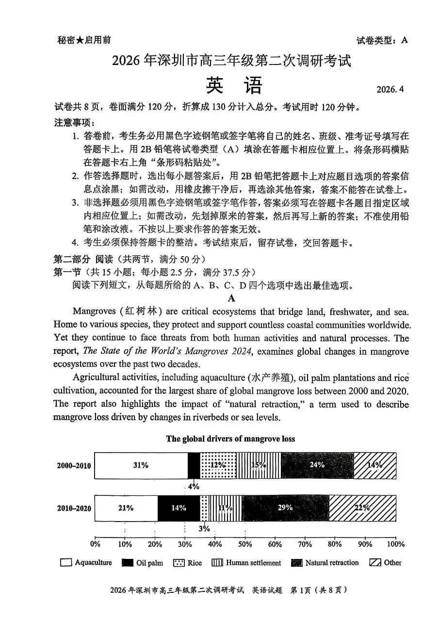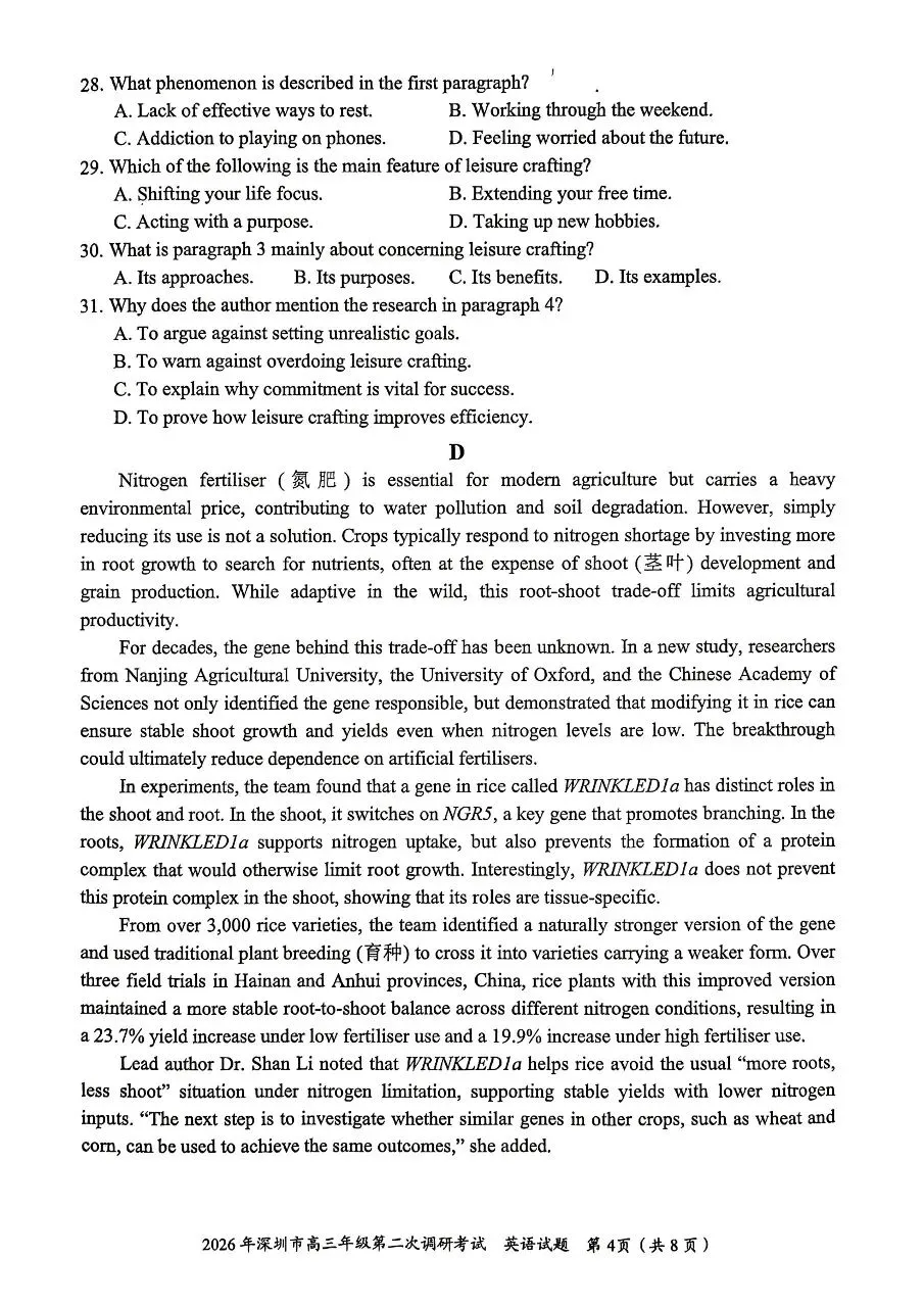 当前位置:首页>考研真题>2026年4月深圳高三二模英语试卷和参考答案