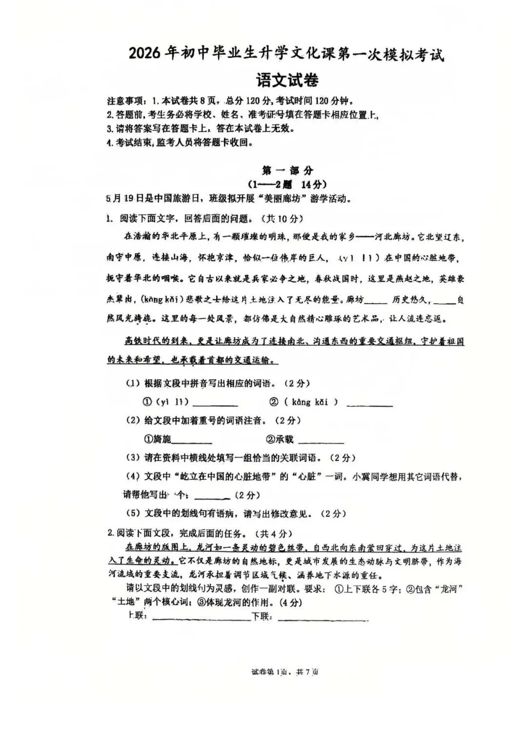2026年河北省唐山市中考一模英语试卷(含听力、答案)