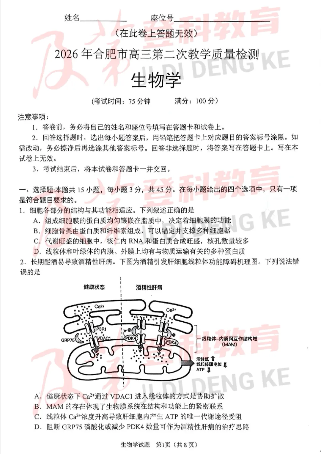 >2026年合肥高三二模全科试卷+答案来啦!