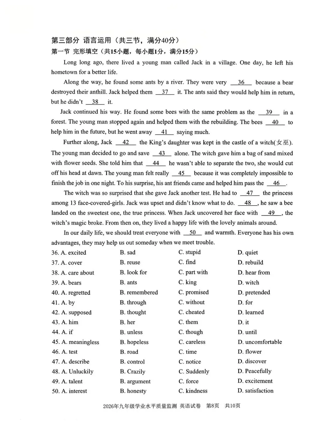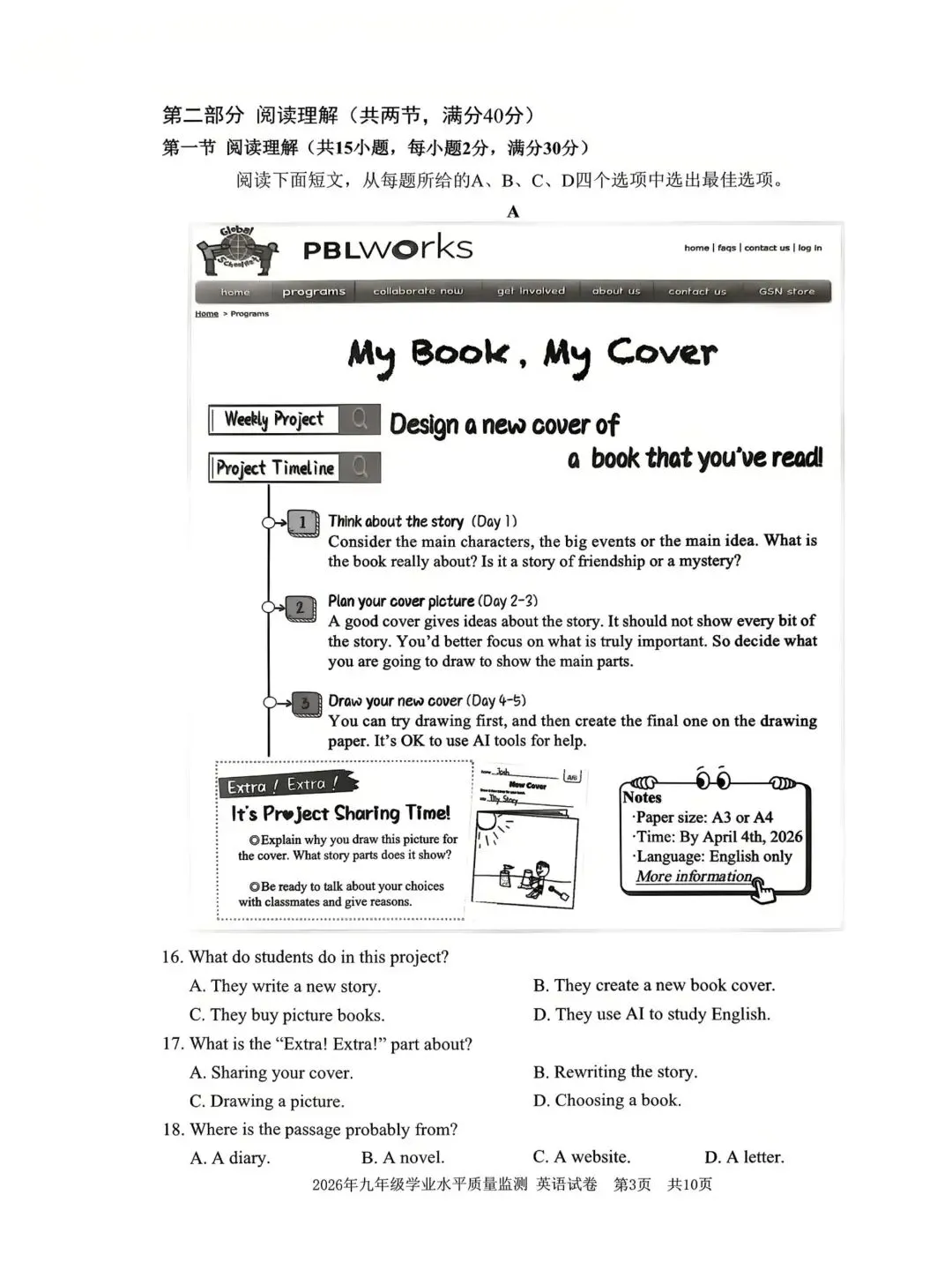 2026年4月浙江省宁波市中考一模进行中刚刚结束,语文、数学、英语、科学、社会试卷和答案,听力音频已齐全,免费下载方式见文末。