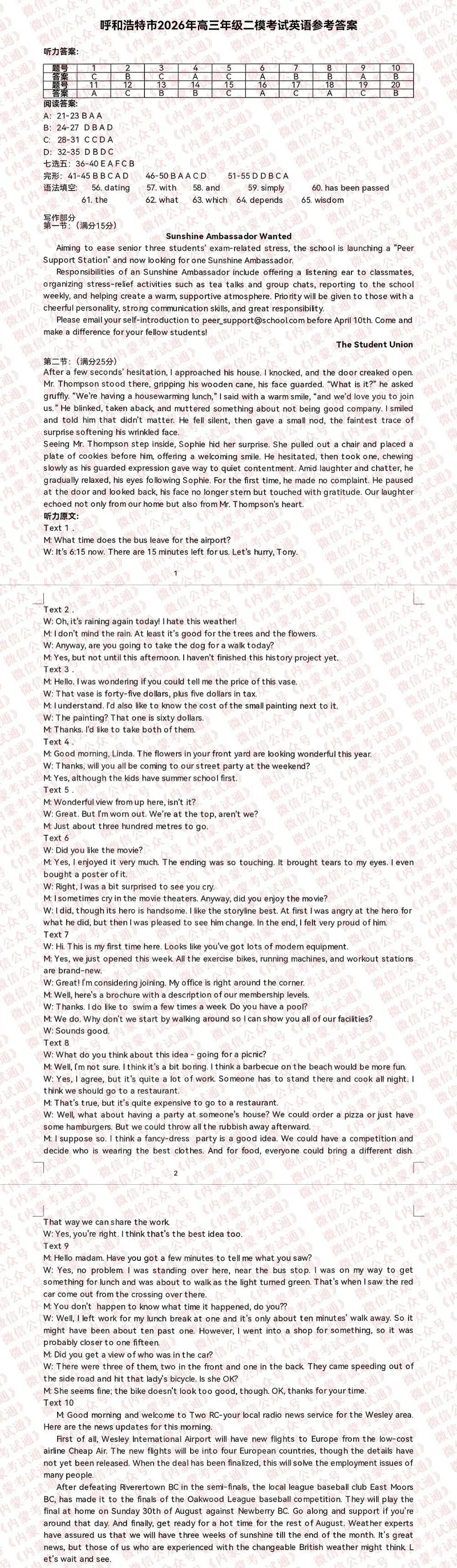 2026年内蒙古呼和浩特市高三年级二模考试试卷及答案,微信公众号《内蒙考试通》分享的2026年内蒙古呼和浩特市高三年级二模考试试卷及答案分享给所有同学和老师,希望能够帮助考生在2026年高考当中获得好成绩。建议考生关注公众号《内蒙考试通》第一时间获取最新试题及答案。