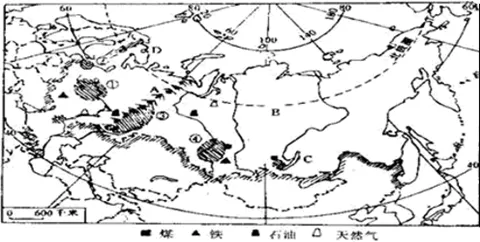(1)岛屿:A______;地形区:C______;工业区:D_____。请根据图中①②③这三条河流的流向判断俄罗斯亚洲部分的地势特点。