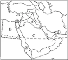 (1)西亚是世界上石油储量最丰富的地区,主要分布在______及其沿岸地区,图中最大产油国C是指__________;