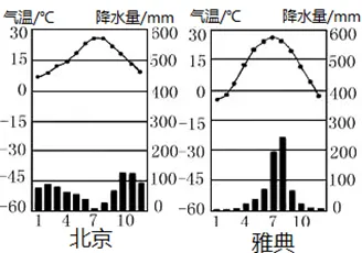 (1)比较是找出两件事物的相似性,对比是找出其不同点。北京与雅典纬度位置大体相当,但气候差异很大。请你对两地气候做比较对比。相同点:_______________________。不同点:__________________________。
