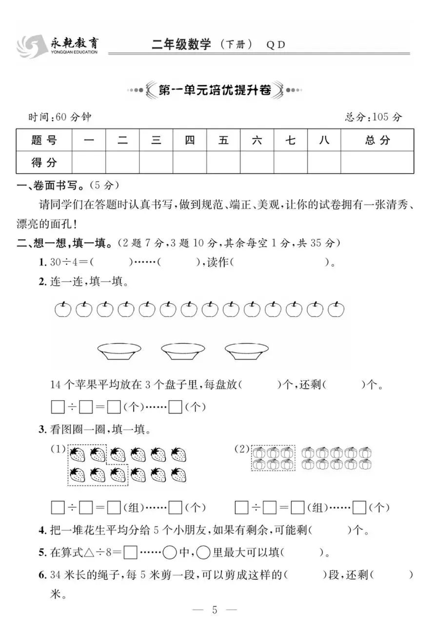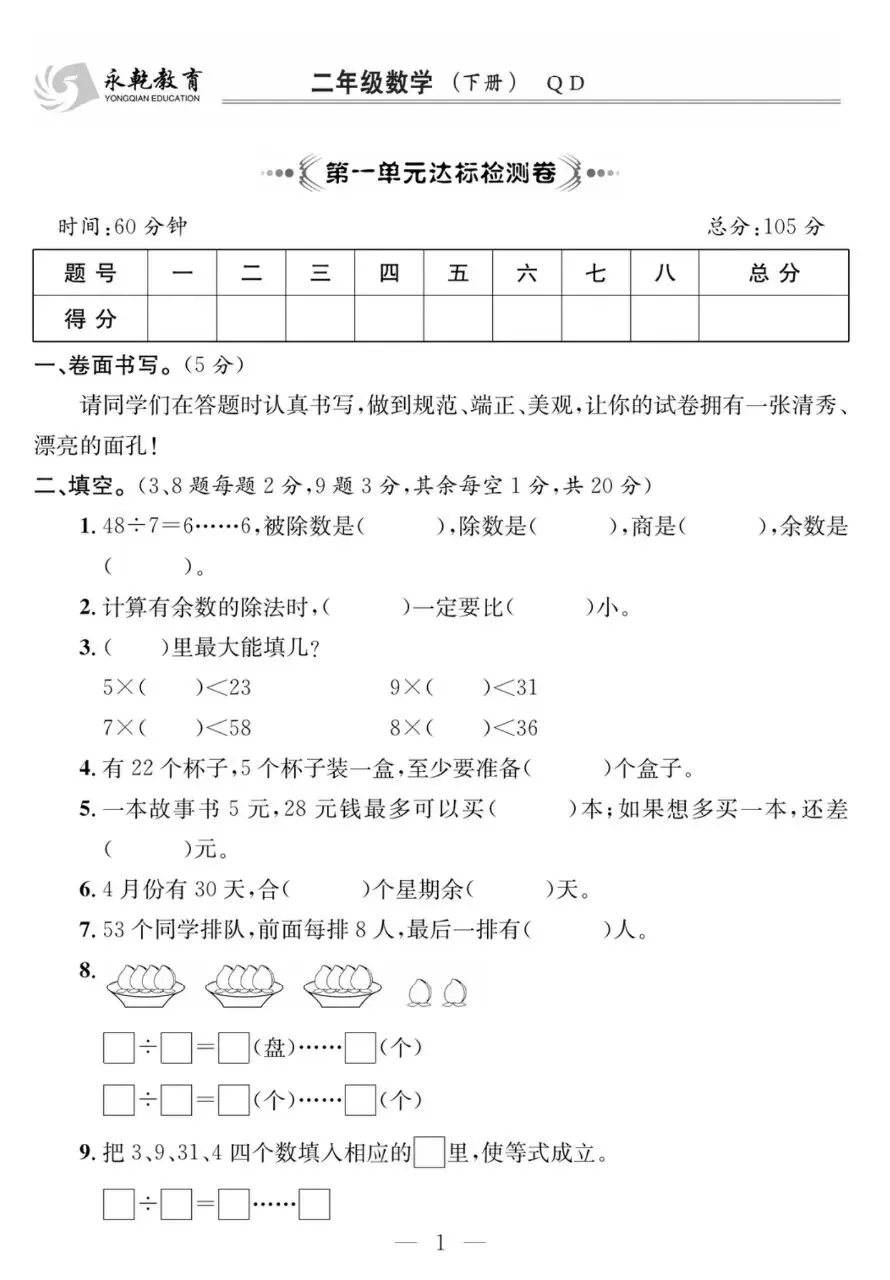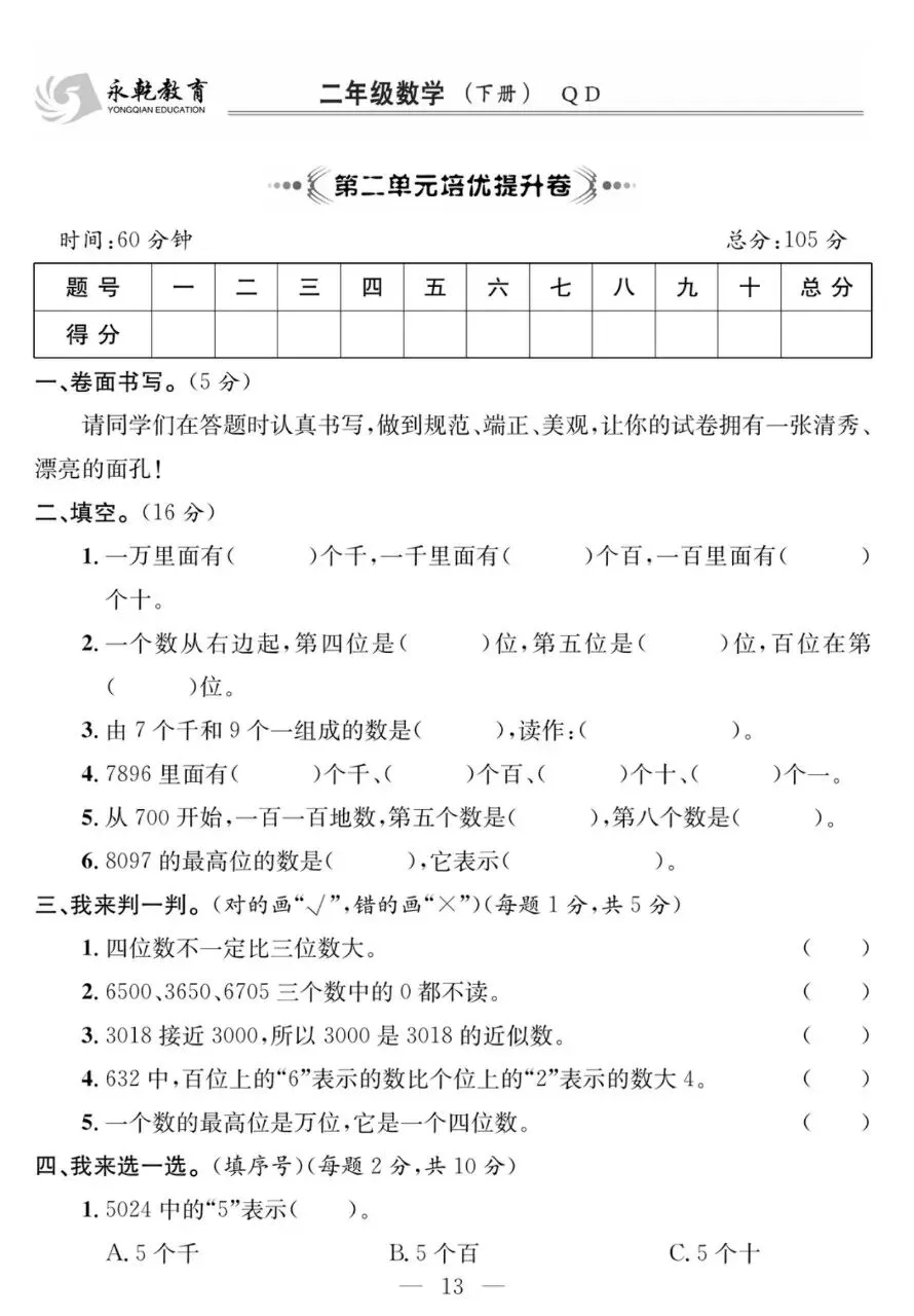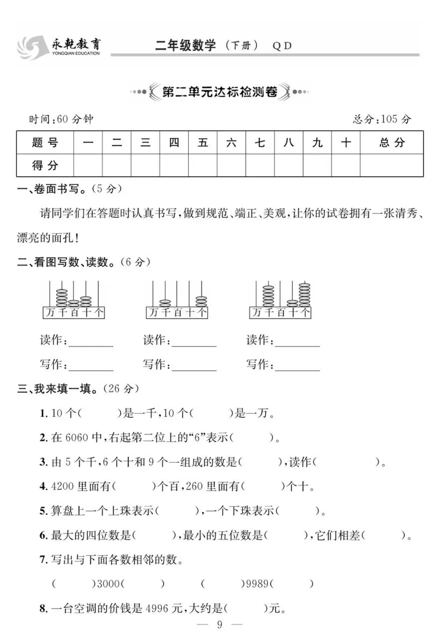 二下QD数学-课程探究大试卷电子版免费下载!