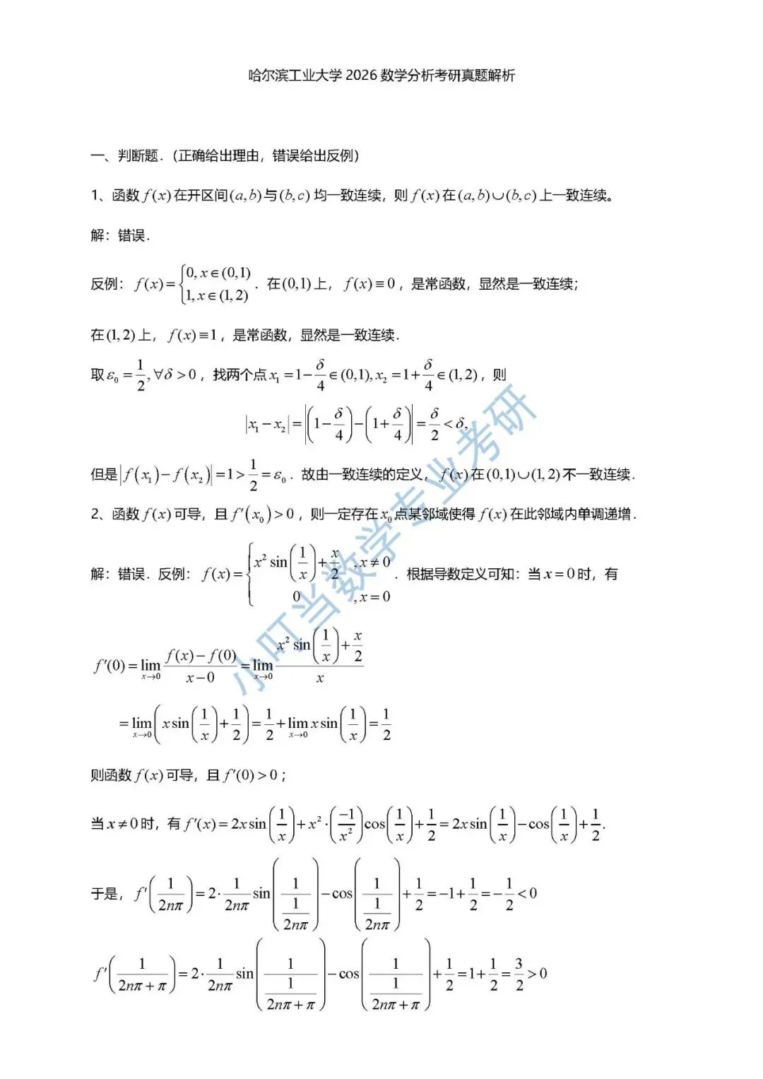 >哈尔滨工业大学2026 数学分析考研真题解析