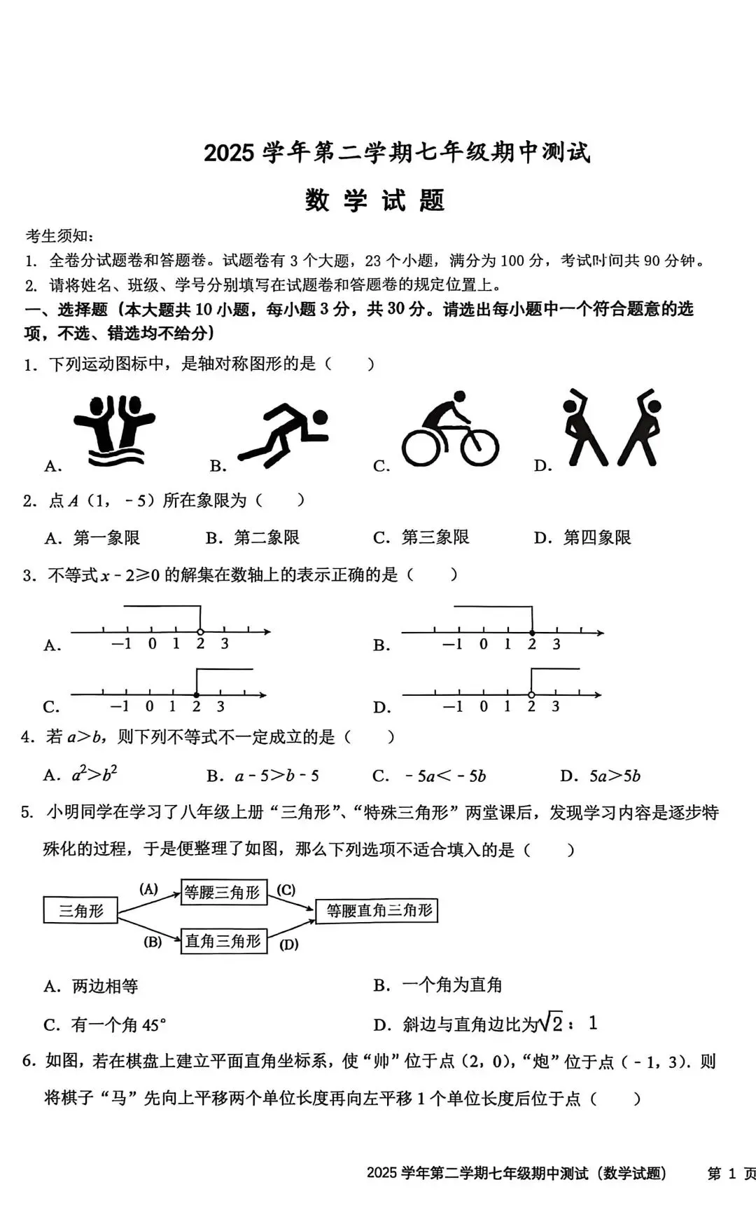 2025-2026高新一中七下期中试卷