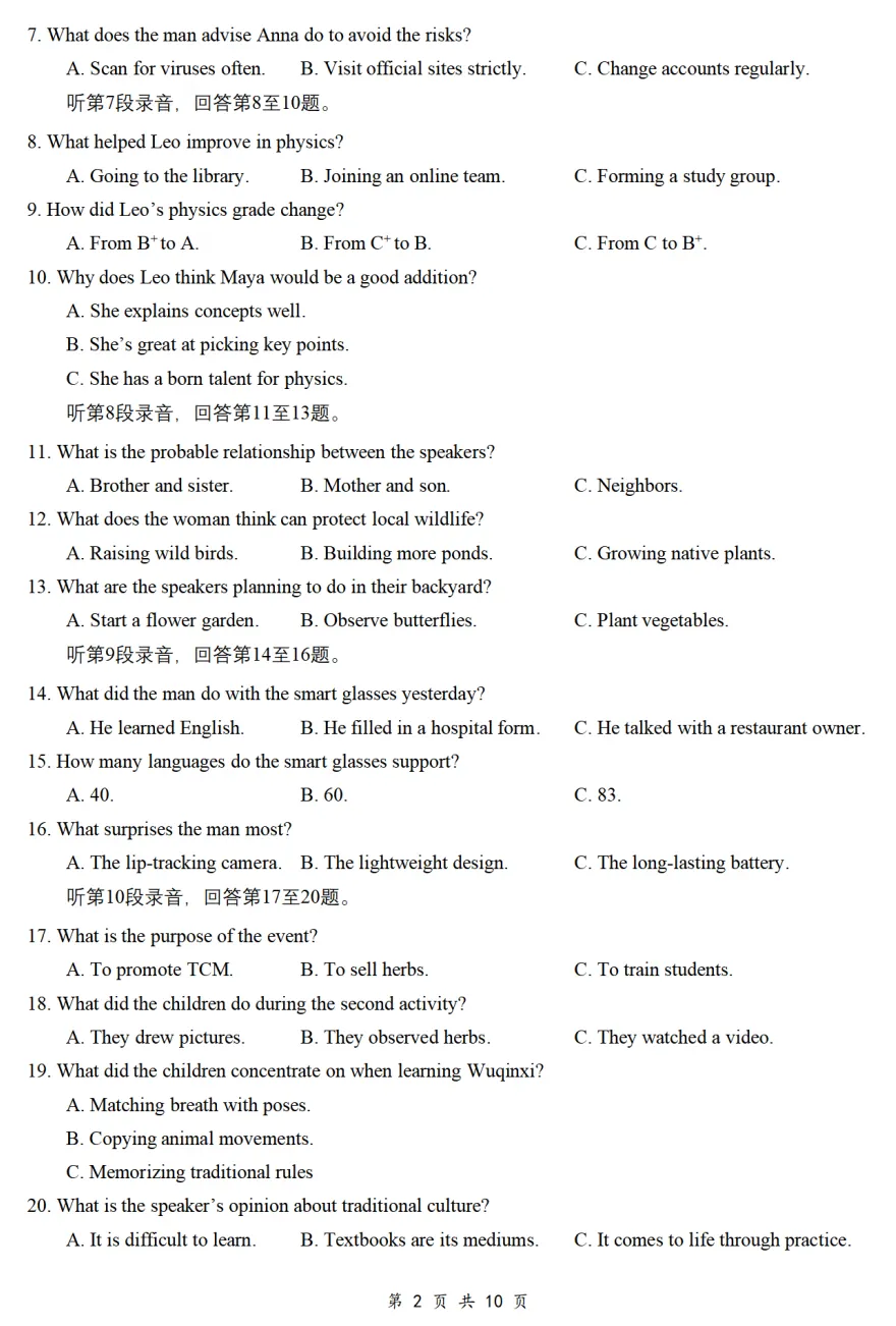 •听力:中医药进校园、五禽戏