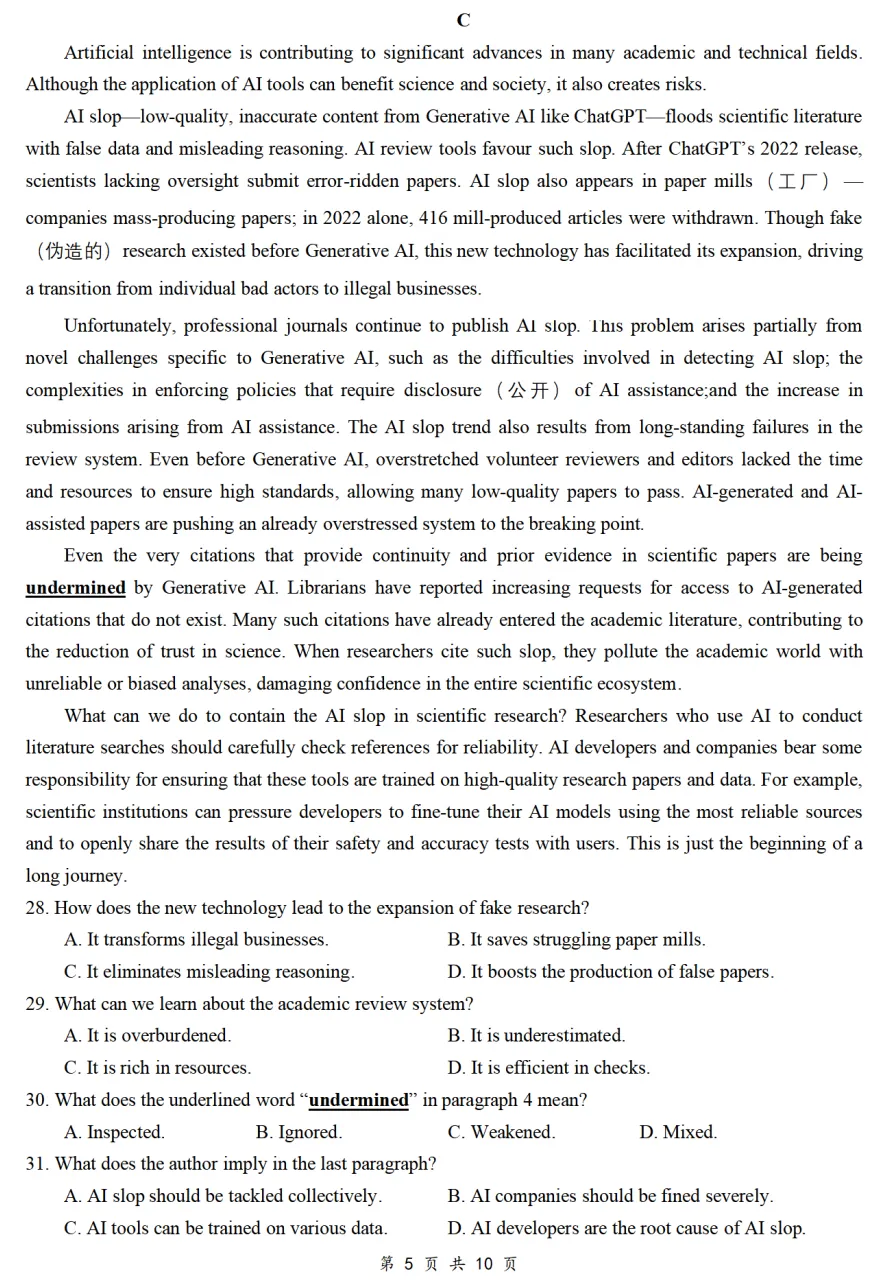 尤其C、D两篇,有大量隐性逻辑,非常像山东高考真题难度。
