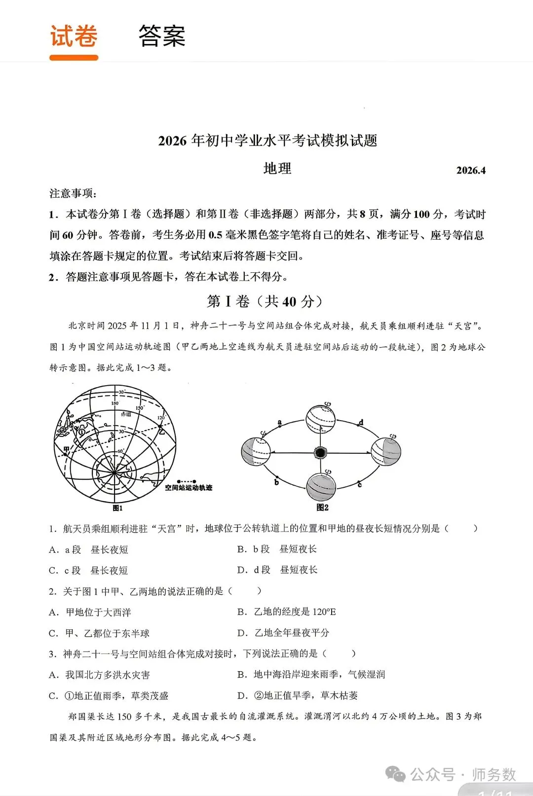 >2026 郯城一模地理试卷附答案
