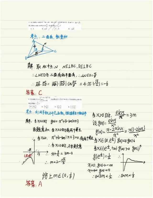 单选第8题,考察分段函数的零点问题,利用导数画函数的草图。