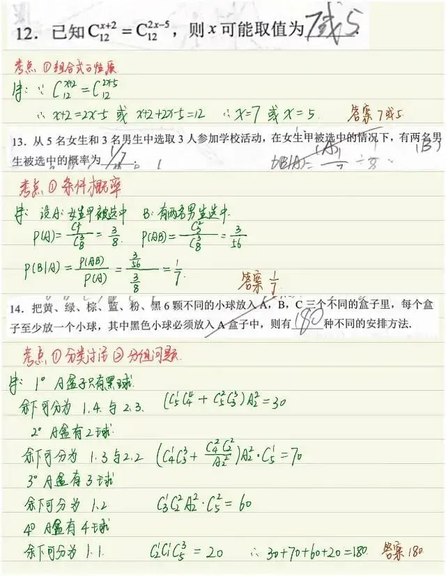 填空第14题,较为复杂的组合应用中的分类讨论,并结合分组法一起考查。