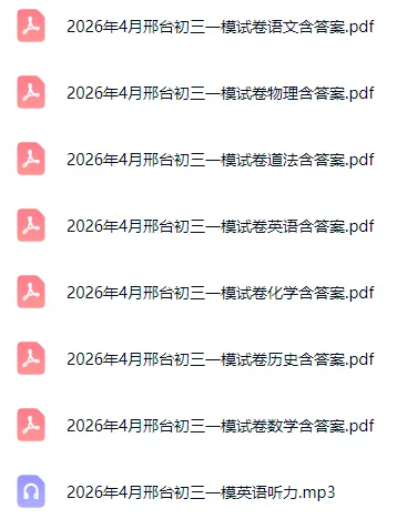 今天给同学们分享的是2026年4月邢台、张家口初三一模试卷含答案听力