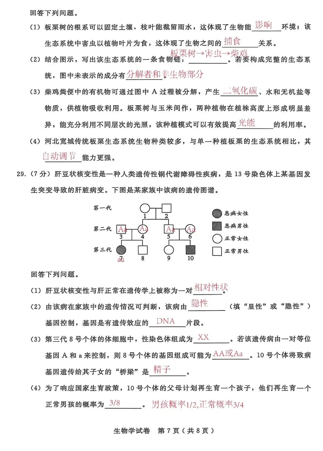 河北省地理、生物两科的中考在初二年级进行,成绩在明年计入中考总分。根据其他省市中考改革的情况来推测,这届初二考生可能是最后一届把地生计入中考的,下一届的地生考试可能给ABCD的等级,不计入中考总分。目前的中考模式下,地理+生物的分值=物理+化学=数学,在事实上稀释了数理化的权重,对理科较弱的同学是比较有利的,初二的同学一定要在最后两个月奋力拼一下,给明年的中考积累优势。地理卷的结构延续了2025年学考。单选题25道,共25分,材料题4道,共35分,包括填空和简答。这次一模选择题难度不高,和去年的学考持平;材料题有一定开放性,比去年学考难一些。生物卷的结构延续了2025年学考。单选题25道,共25分,填空题5道,共35分(每空1分)。知识点分布比较平均,七年级和八年级的内容差不多各占一半,考察范围广,但是难度不大。除了29题遗传的个别空,没有计算。选择题中的大部分错误选项都给的很明显,即使是不熟悉的知识板块,靠常识也有机会选出来。生物这门学科不能纯靠死记硬背,一定要在理解的基础上进行记忆,希望这次一模没上50分的同学再努力一下。