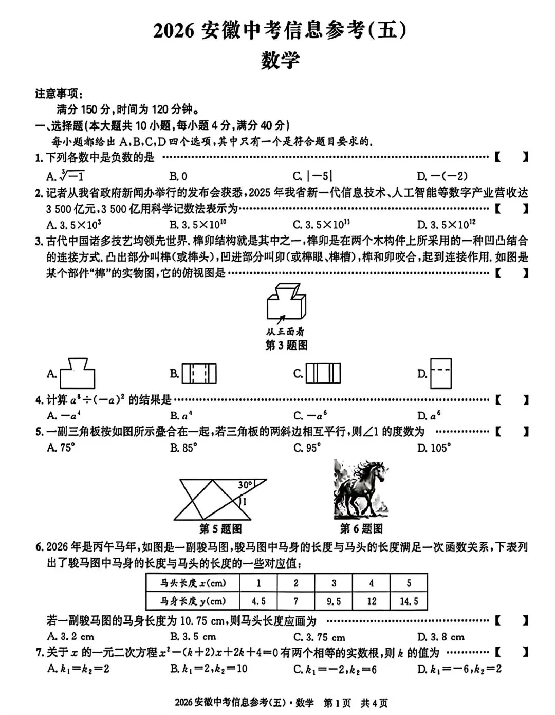 2026中原名校大联考中考一模试卷及答案(全7科)