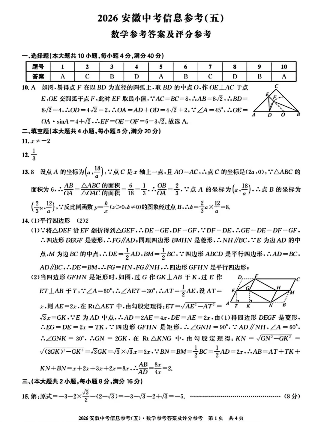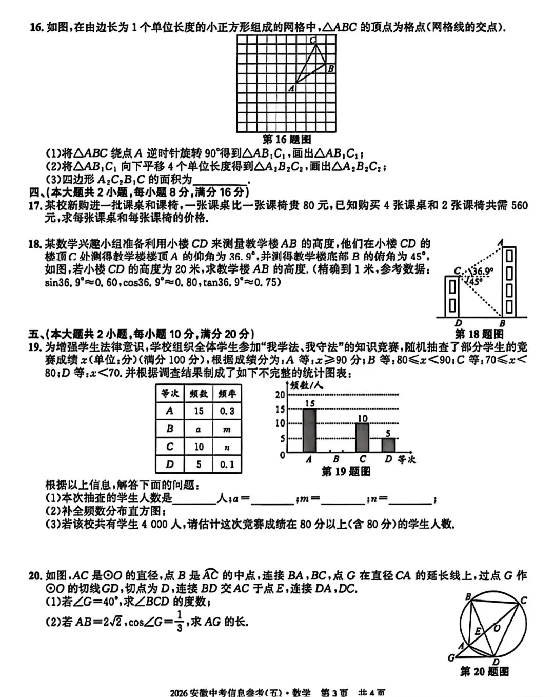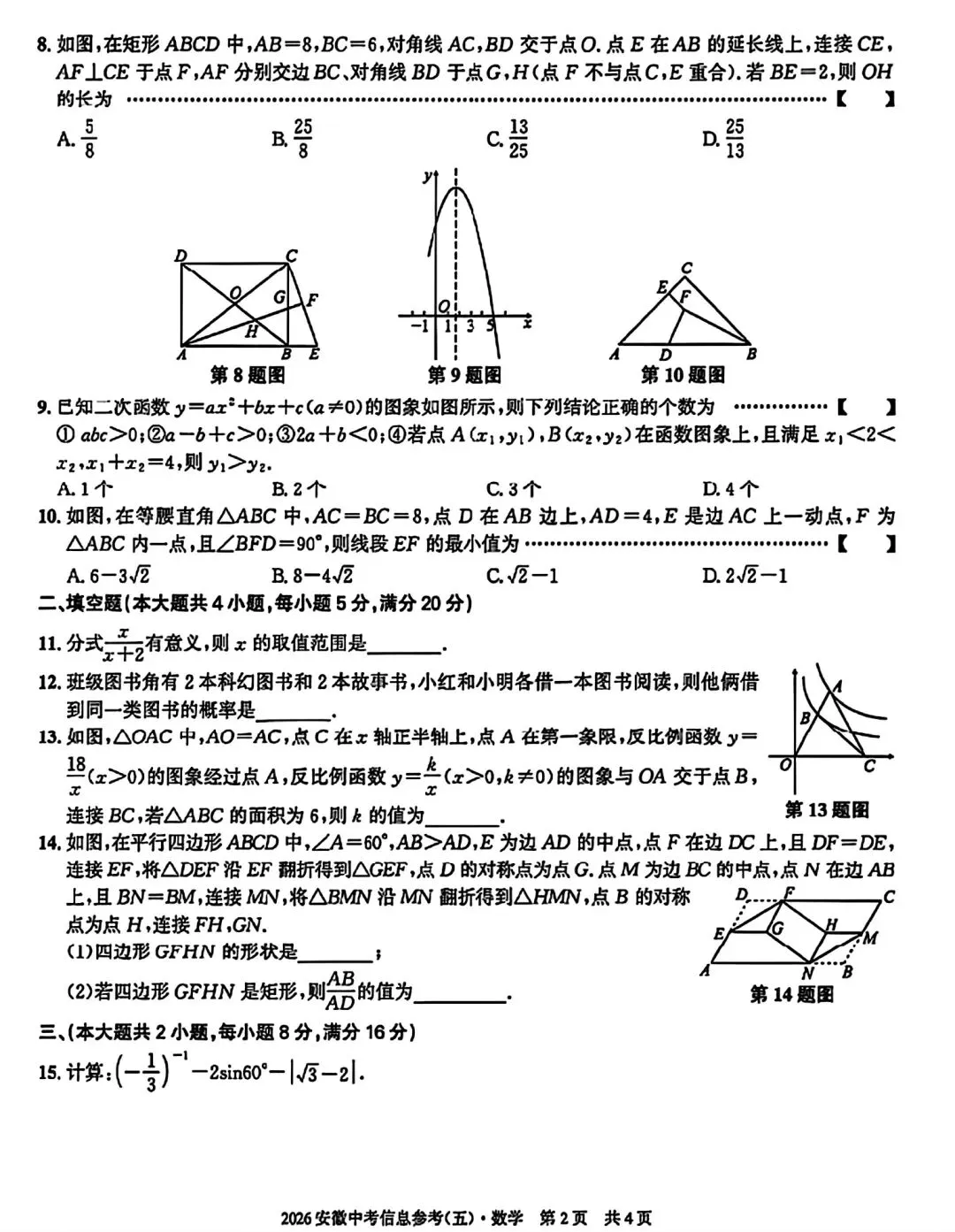 【模拟试卷】2026信阳市潢川县一模数学试卷及答案