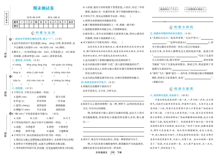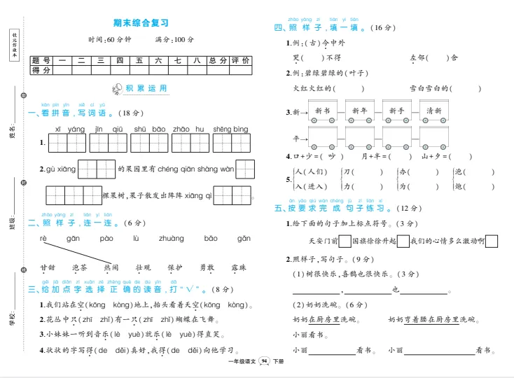 小学期末试卷26春,1-6年级下册(2026春最新版,可下载打印)