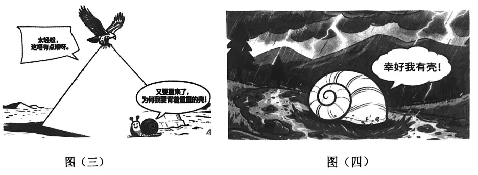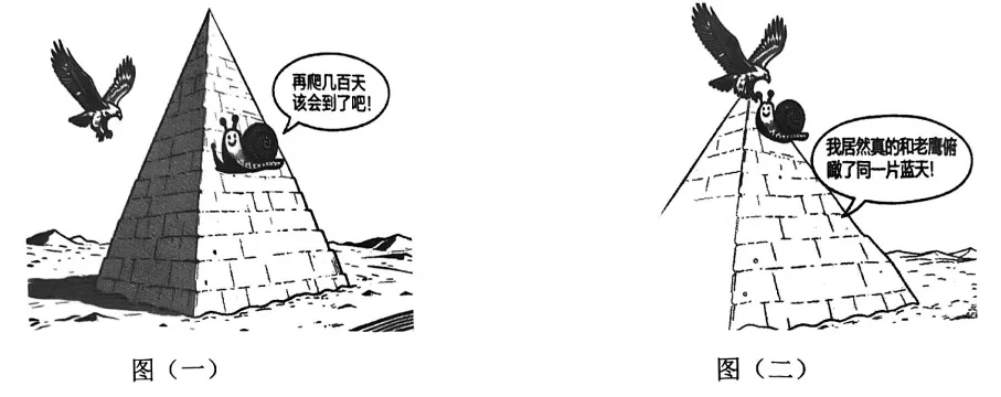 (1)请你写出图(一)图(二)漫画所阐释的 “蜗牛精神”。(2 分)