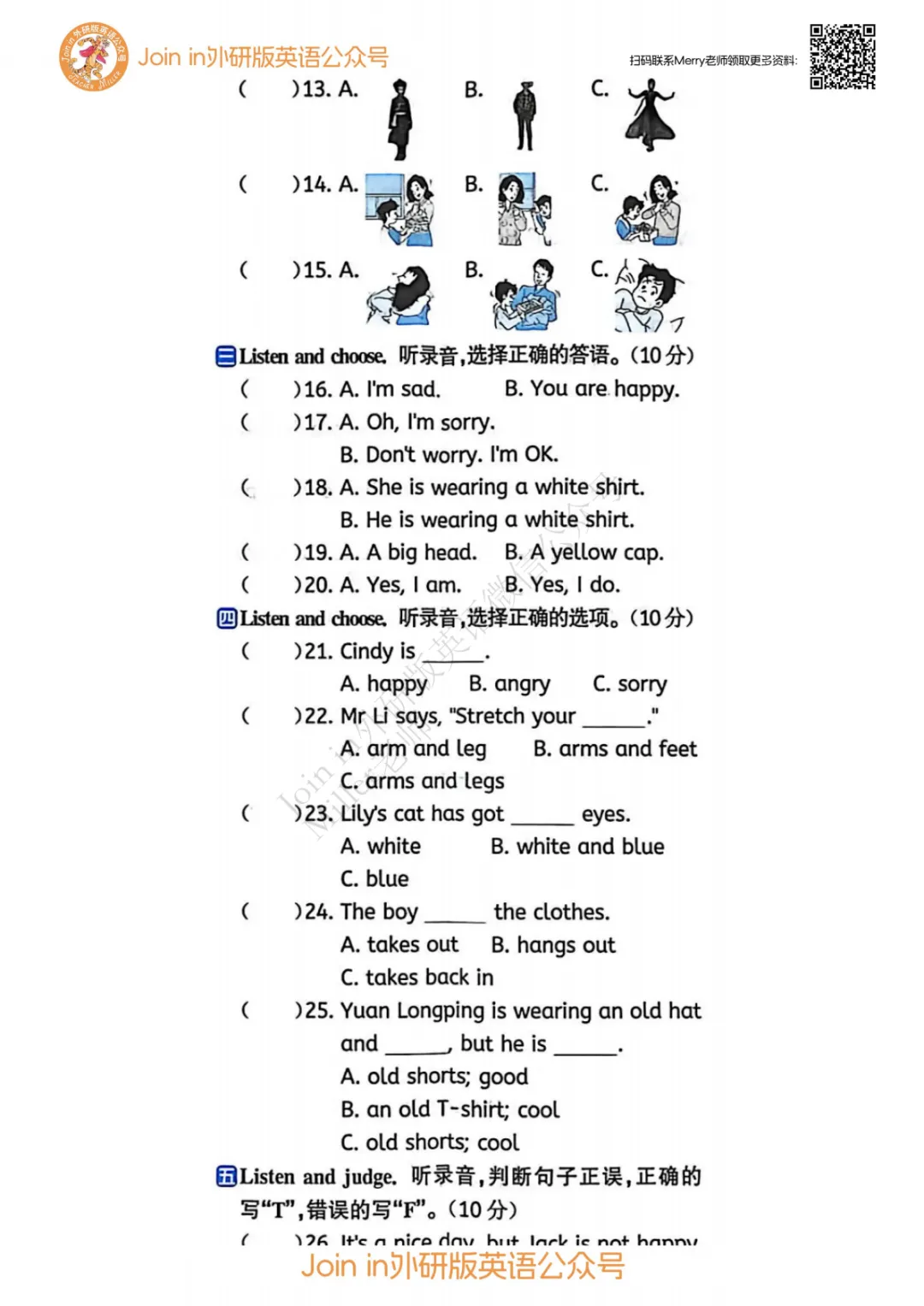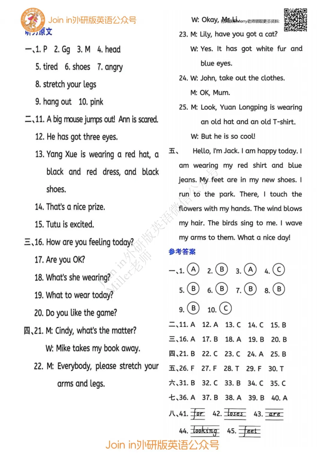 三下期中 答案及听力稿