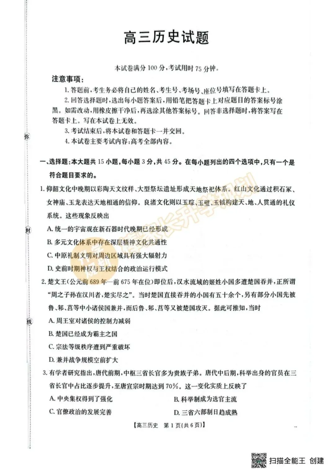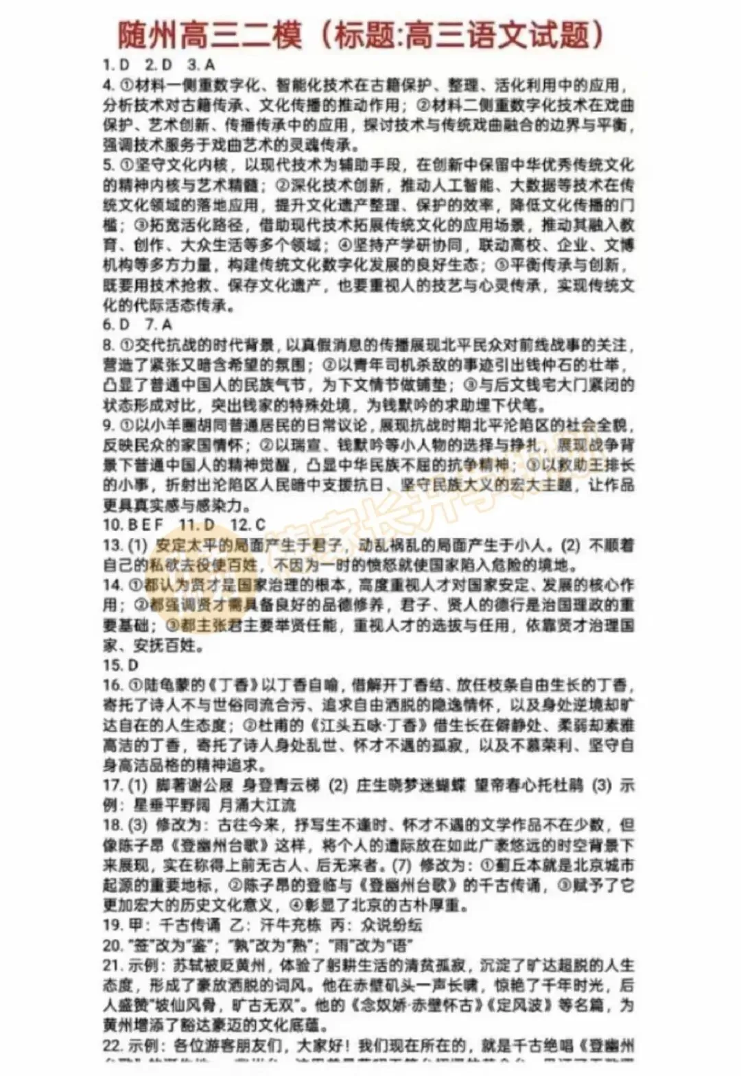 回复【随州】,领取2026随州高三4月联考试卷答案