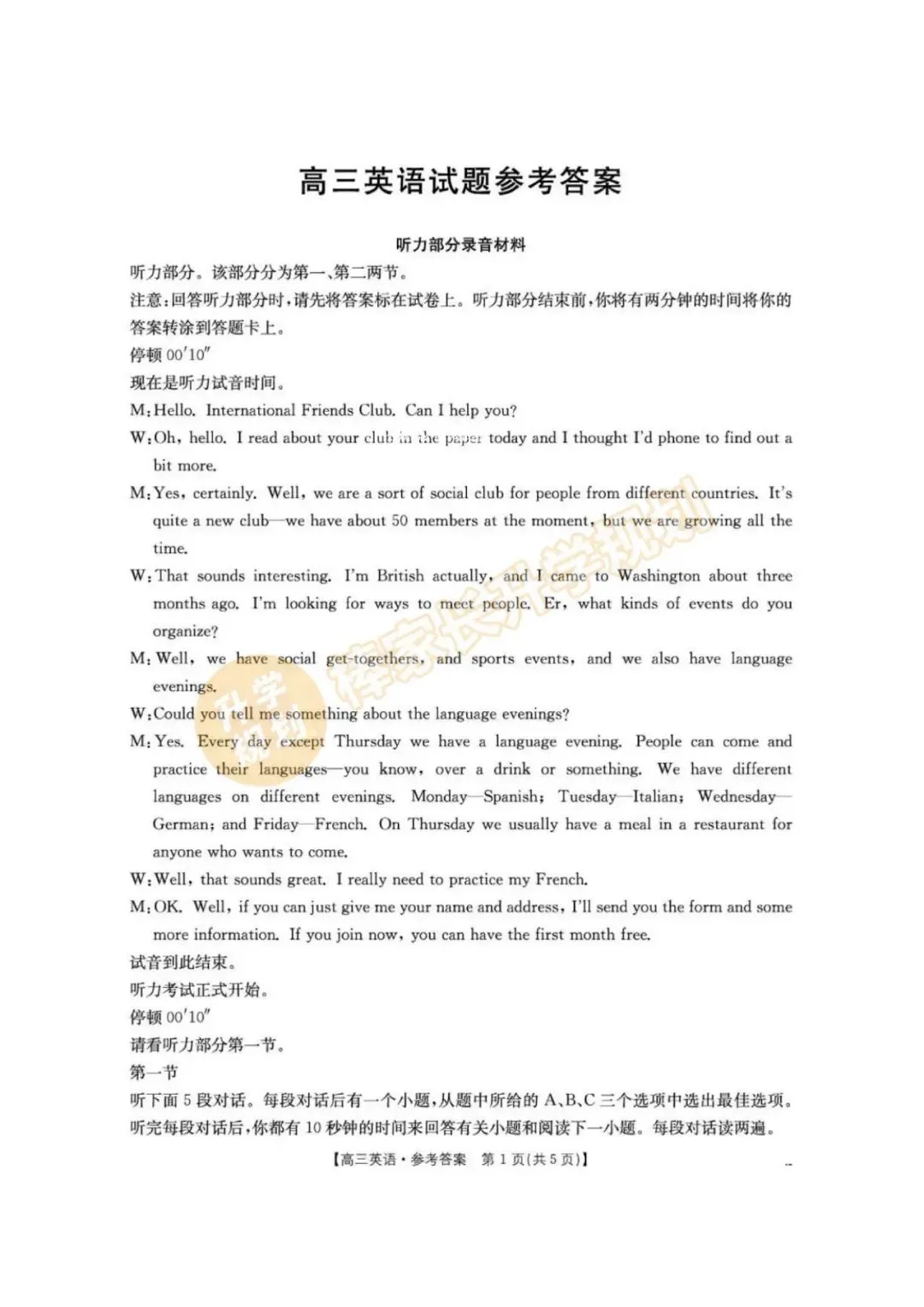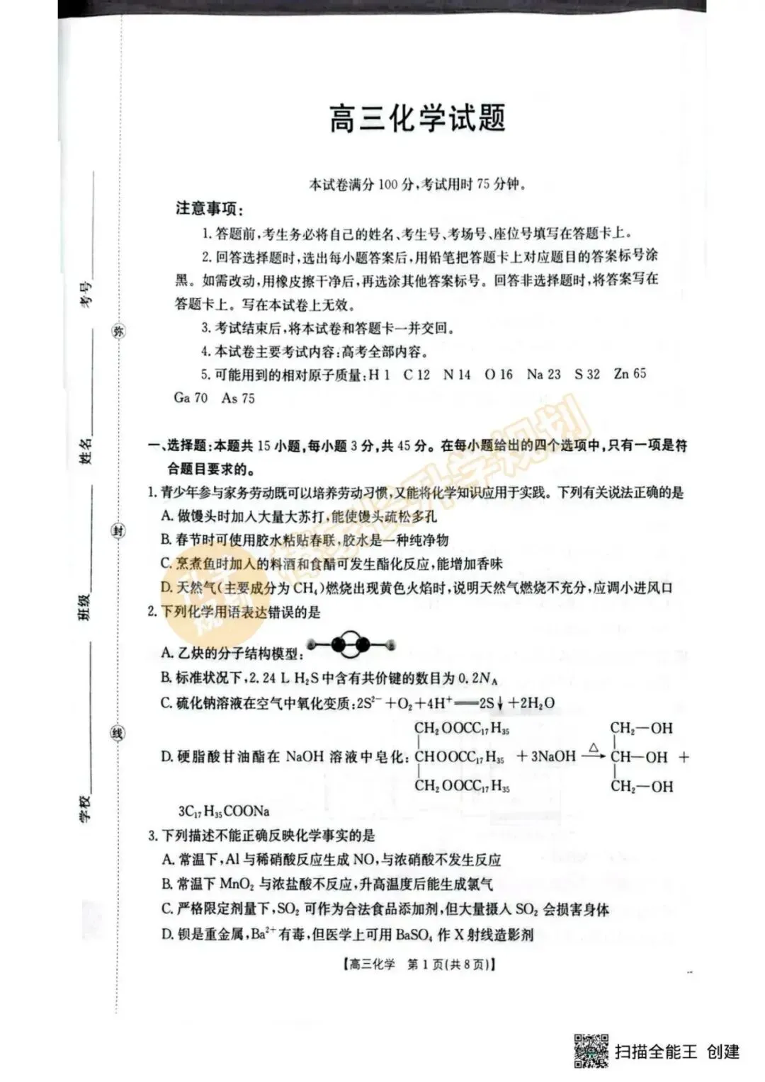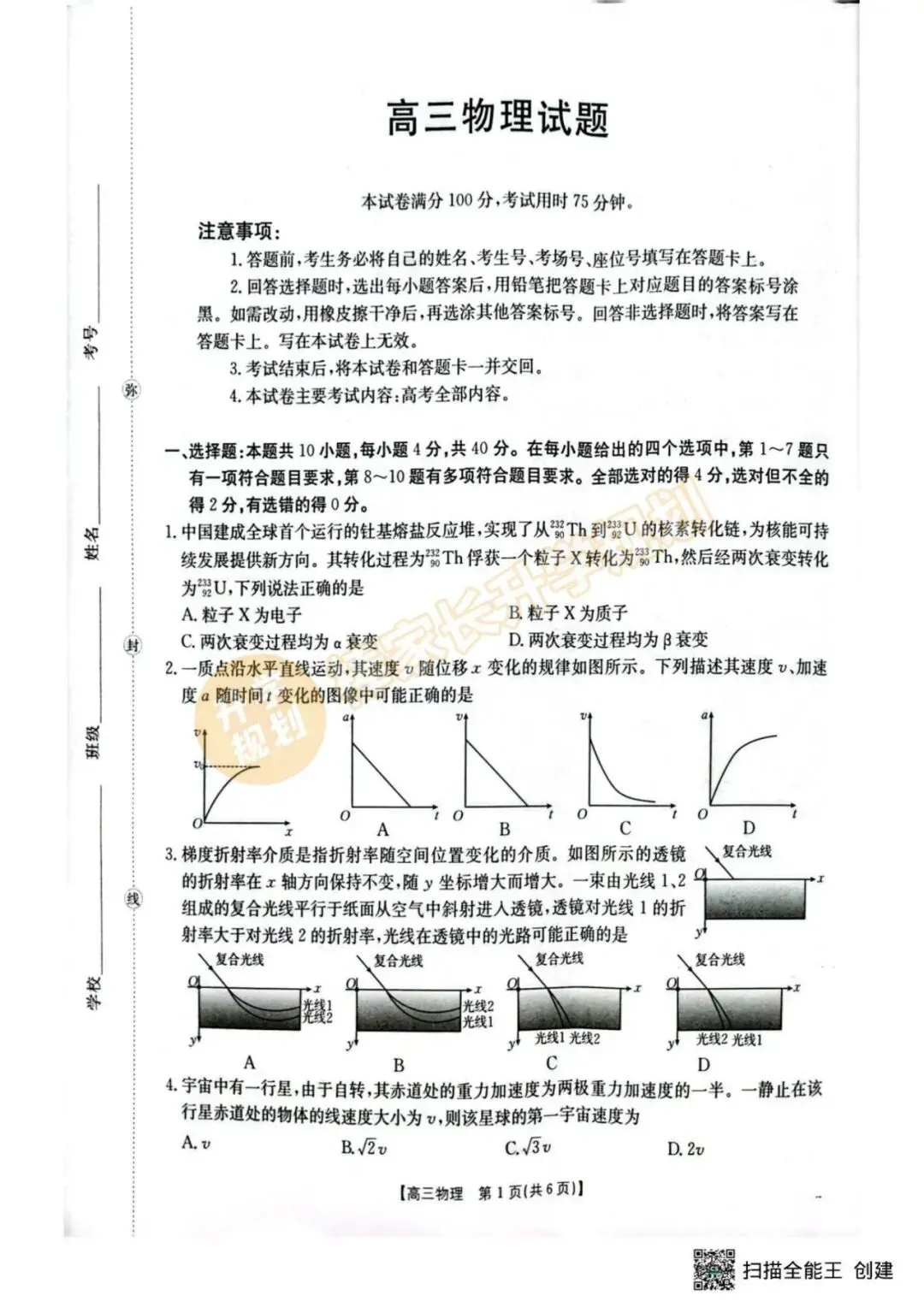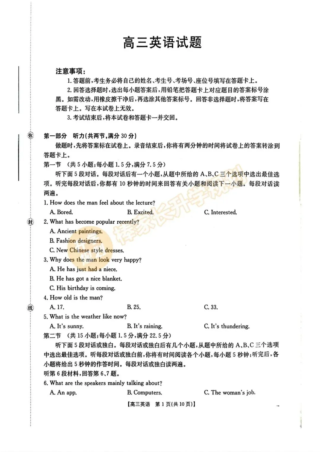 4月联考试卷及答案