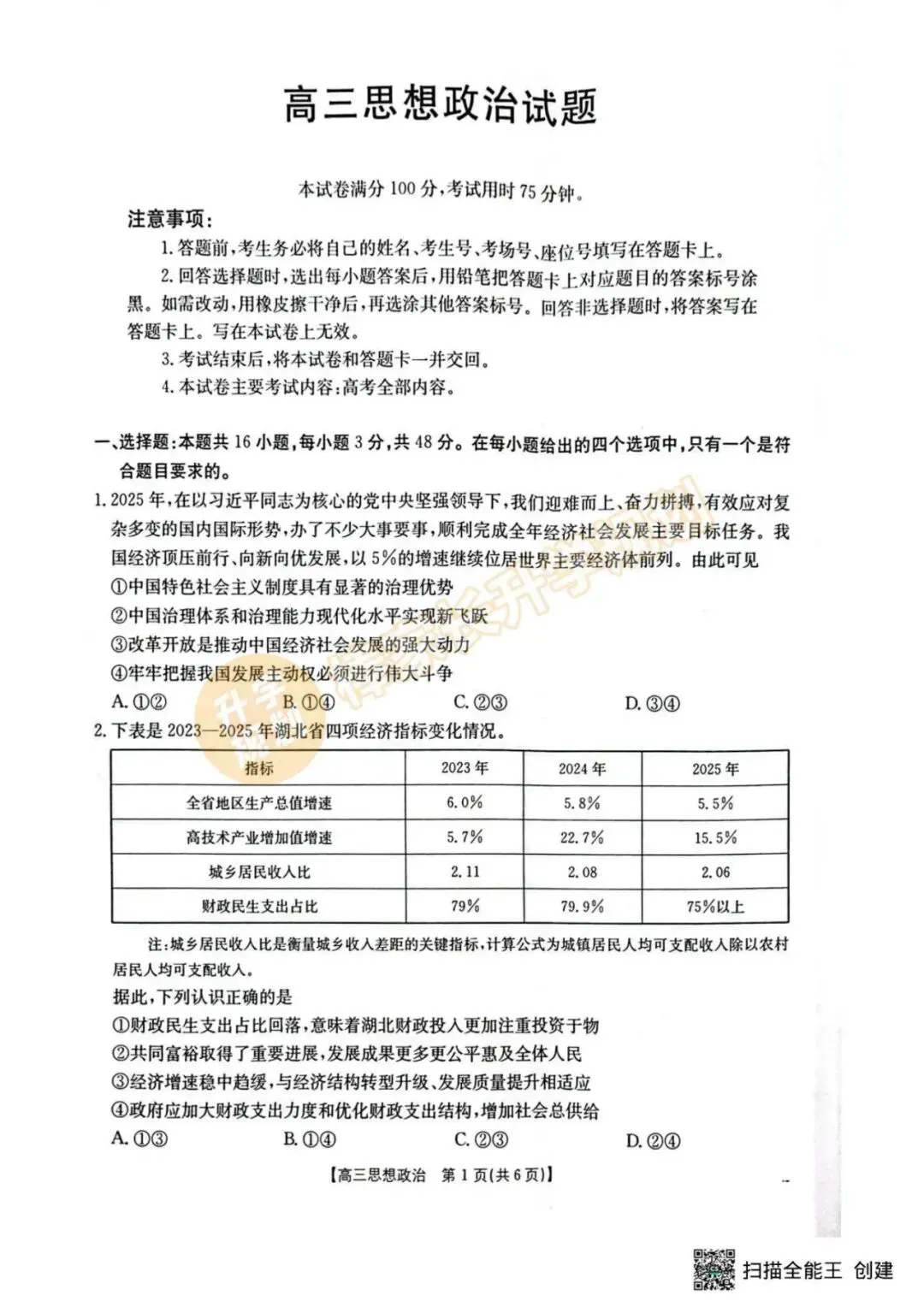 ④回复“高考”查看2025年湖北高考9科试卷真题