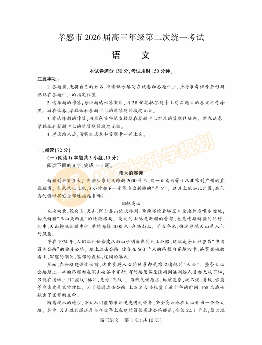 领取2026孝感高三