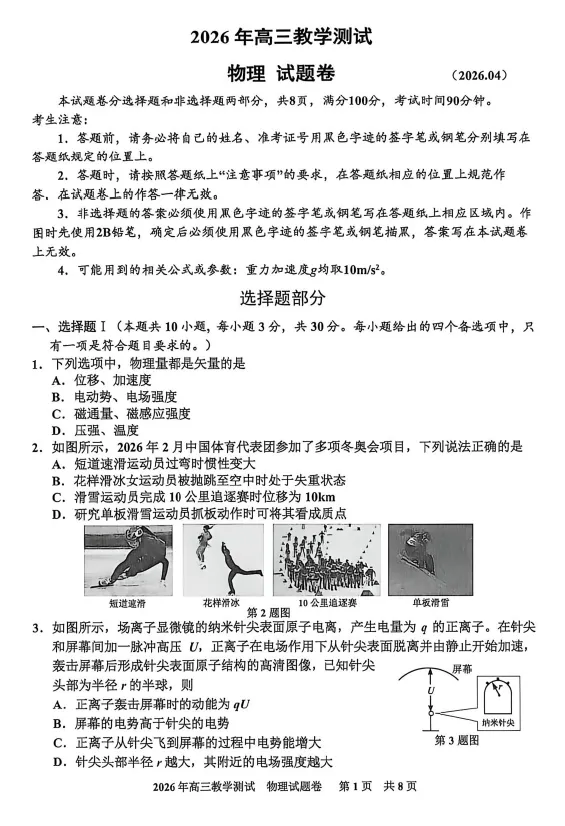 2026届河北张家口二模物理试卷+答案